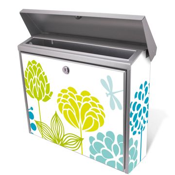 Der Briefkasten besteht aus Edelstahl, einem hochwertigen Material das witterungsbeständig ist. Das Motiv besteht aus einer wetter- und UV-festen Folie, die Ihren Briefkasten zusätzlich vor Kratzern schützt. Der Postkasten ist 31,5cm hoch, 38,5cm breit und 12cm tief. Der Briefeinwurf ist 33,2cm x 2,7cm, Format DIN C4. Der Briefkasten wird mit Montagematerial und zwei Schlüsseln geliefert.