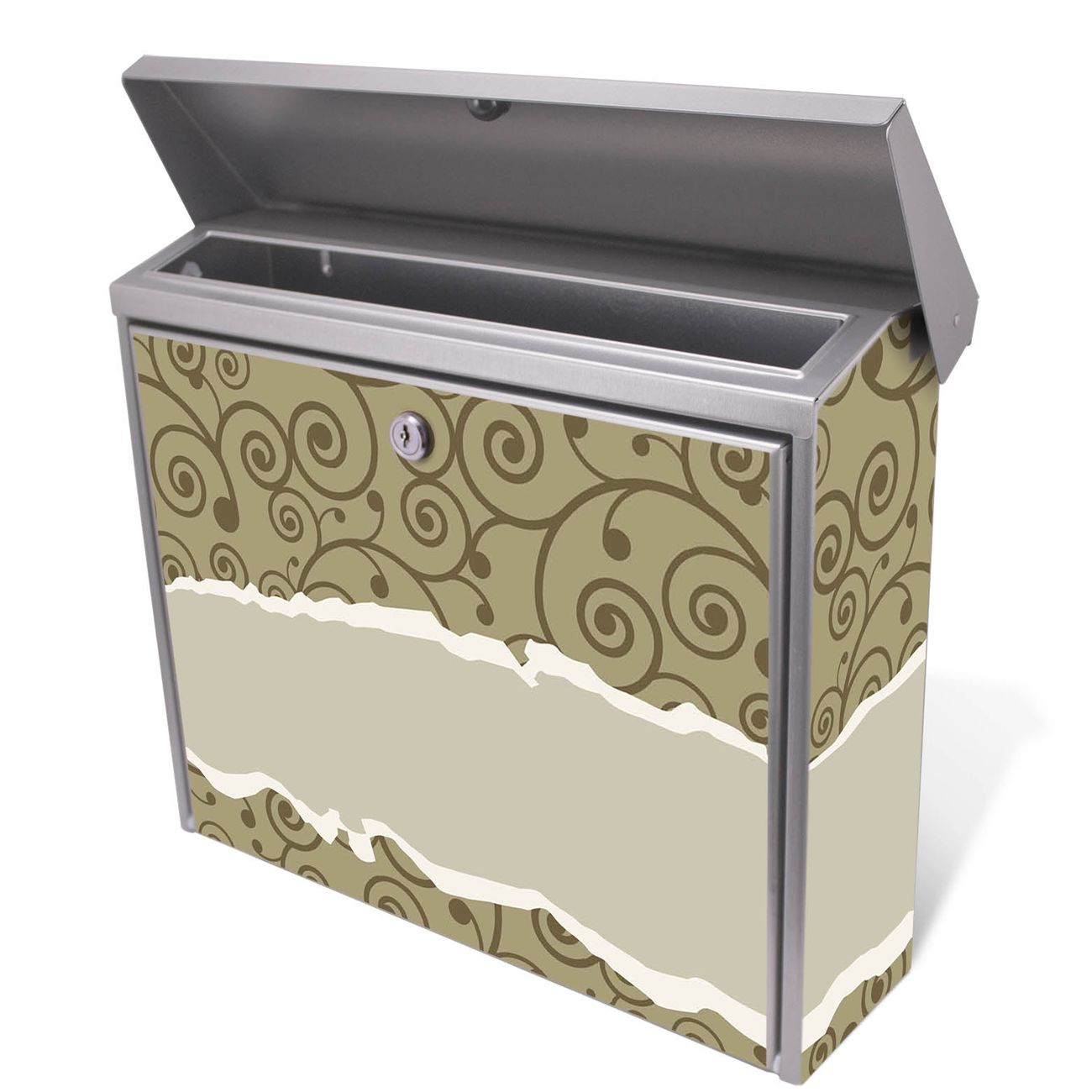 Der Briefkasten besteht aus Edelstahl, einem hochwertigen Material das witterungsbeständig ist. Das Motiv besteht aus einer wetter- und UV-festen Folie, die Ihren Briefkasten zusätzlich vor Kratzern schützt. Der Postkasten ist 31,5cm hoch, 38,5cm breit und 12cm tief. Der Briefeinwurf ist 33,2cm x 2,7cm, Format DIN C4. Der Briefkasten wird mit Montagematerial und zwei Schlüsseln geliefert.