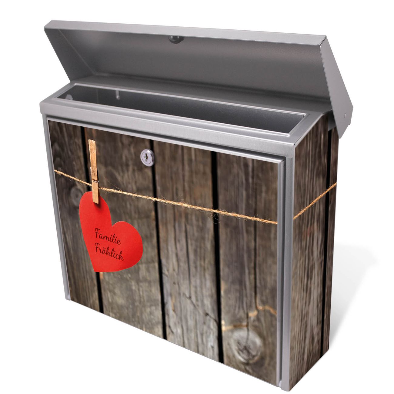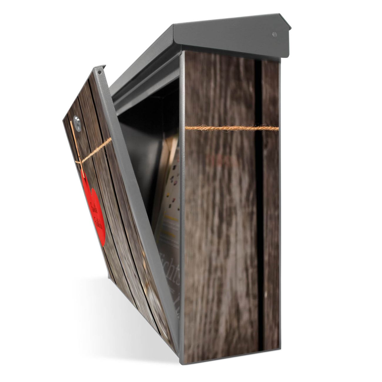 Der Briefkasten besteht aus Edelstahl, einem hochwertigen Material das witterungsbeständig ist. Das Motiv besteht aus einer wetter- und UV-festen Folie, die Ihren Briefkasten zusätzlich vor Kratzern schützt. Der Postkasten ist 31,5cm hoch, 38,5cm breit und 12cm tief. Der Briefeinwurf ist 33,2cm x 2,7cm, Format DIN C4. Der Briefkasten wird mit Montagematerial und zwei Schlüsseln geliefert.