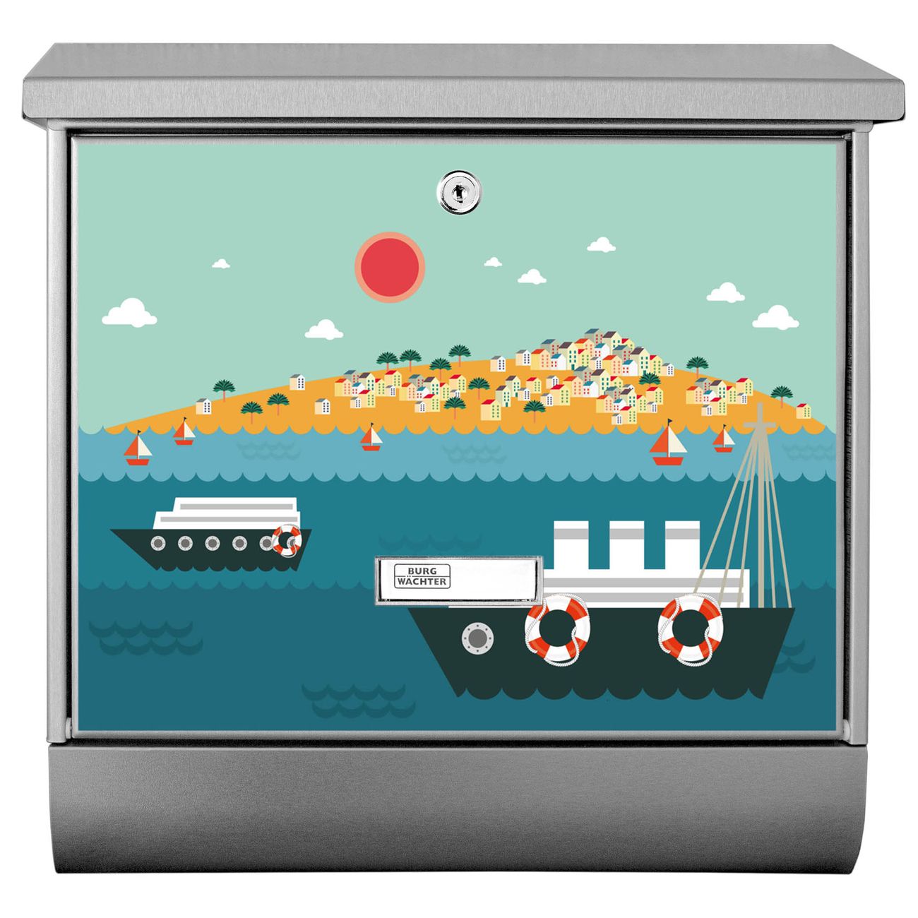 Der Land in Sicht Motivbriefkasten hat ein sehr ansprechendes und zeitloses Design. Unsere Motivpalette hält jede Menge Varianten bereit, ob klassisch, modern, verspielt oder witzig - für jeden haben wir das passende Motiv parat. Der Briefkasten mit Zeitungsfach ist Ihr Aushängeschild, heben Sie Sich ab ohne auf Funktionalität zu verzichten.