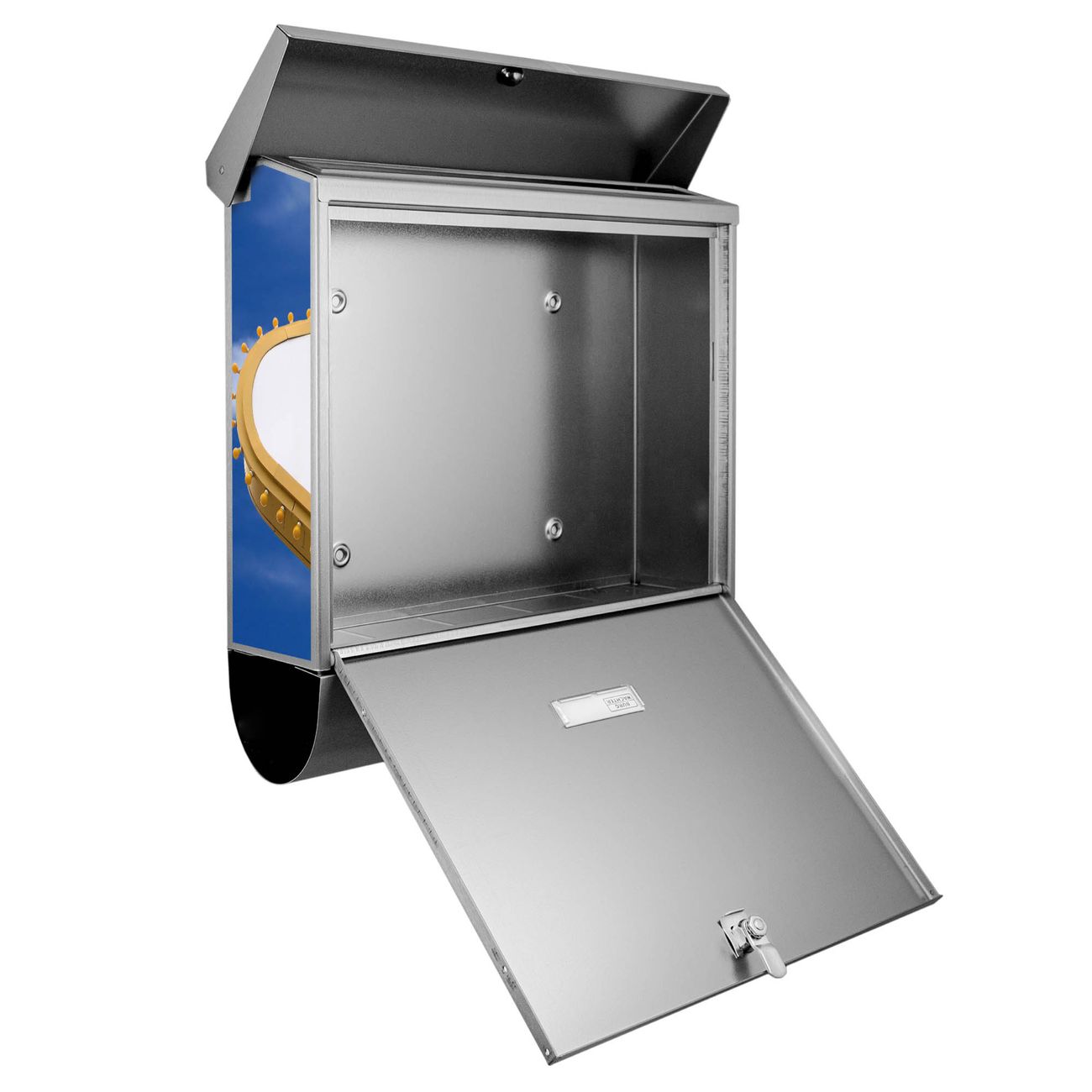 Der Briefkasten besteht aus Edelstahl, einem hochwertigen Material das rostfrei und äußerst unempfindlich gegenüber Witterungseinflüssen ist. Das Motiv besteht aus einer wetter- und UV-festen Folie, die Ihren Briefkasten zusätzlich vor Kratzern schützt. Der Postkasten ist je nach Auswahl 38 x 39 x 12 CM oder 38 x 31,5 x 12 cm (BxHxT) groß. Der Briefeinwurf ist 33,2cm x 3,1cm, Format DIN C4. Der Briefkasten wird mit Montagematerial und zwei Schlüsseln geliefert.