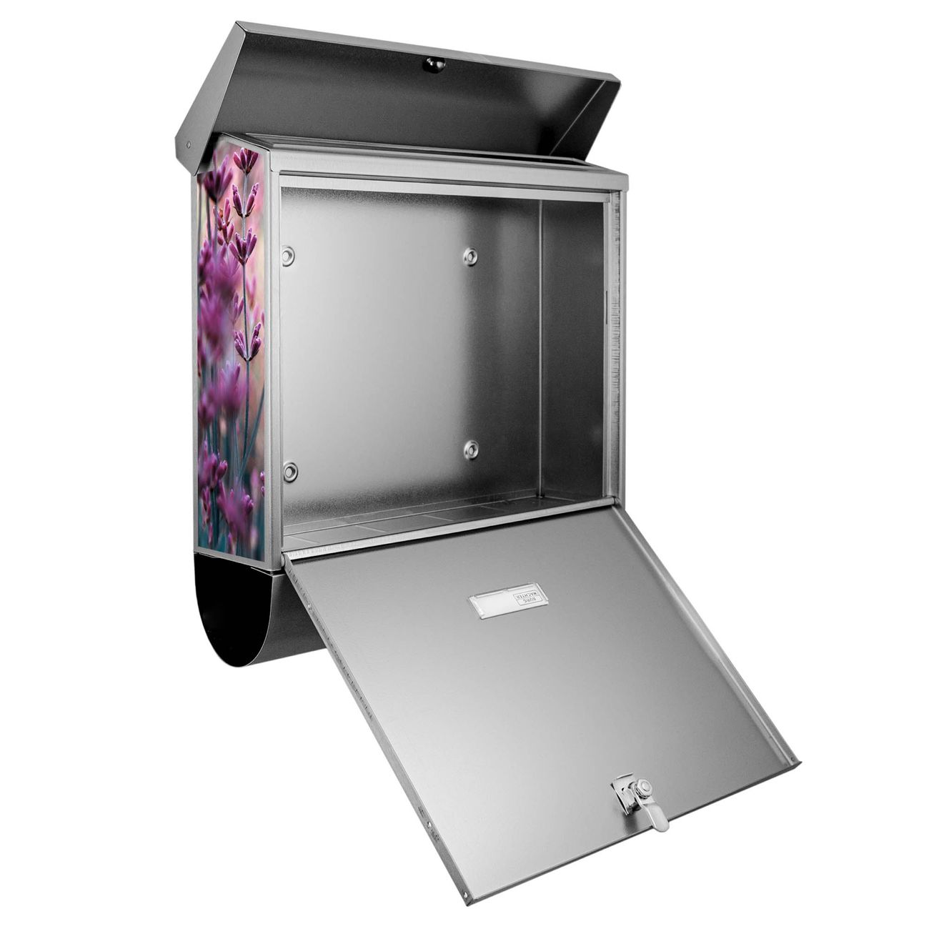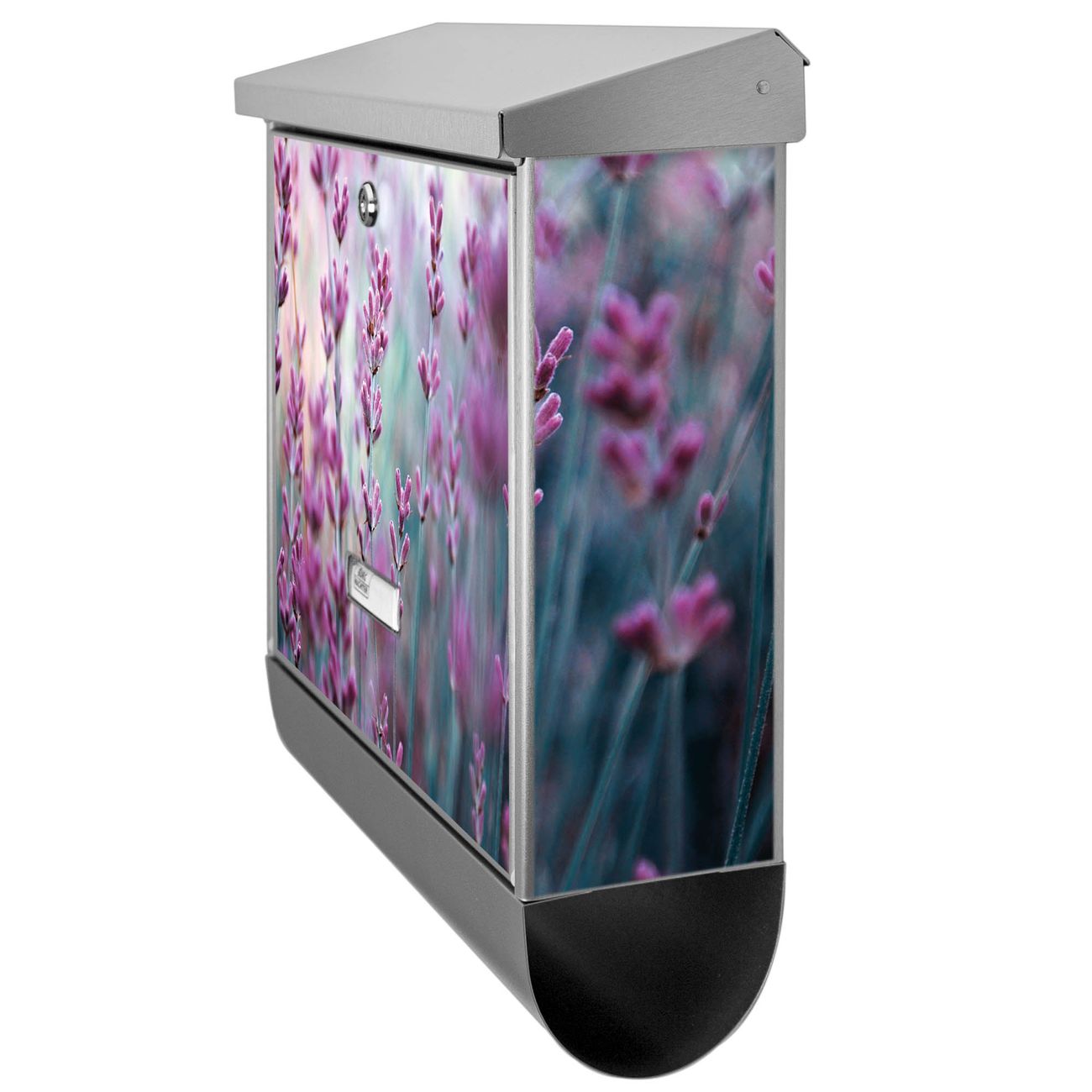Der BURG-WÄCHTER Edelstahl Briefkasten mit Motiv Lavendel 2 und Zeitungsrolle bietet Ihnen mit seinem Fassungsvermögen genügend Platz auch für große A4 Sendungen und Zeitschriften. Das integrierte Regendach schützt Ihre Post vor dem Eindringen von Regen.
