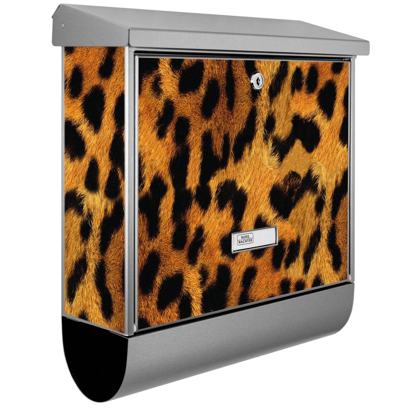 Der BURG-WÄCHTER Edelstahl Briefkasten mit Motiv Leopard und Zeitungsrolle bietet Ihnen mit seinem Fassungsvermögen genügend Platz auch für große A4 Sendungen und Zeitschriften. Das integrierte Regendach schützt Ihre Post vor dem Eindringen von Regen.