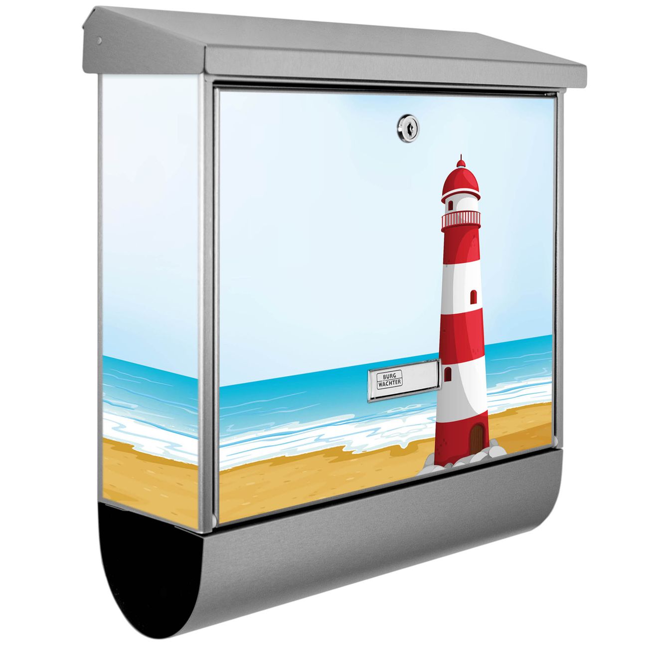 Der Leuchtturm Illustration Motivbriefkasten hat ein sehr ansprechendes und zeitloses Design. Unsere Motivpalette hält jede Menge Varianten bereit, ob klassisch, modern, verspielt oder witzig - für jeden haben wir das passende Motiv parat. Der Briefkasten mit Zeitungsfach ist Ihr Aushängeschild, heben Sie Sich ab ohne auf Funktionalität zu verzichten.