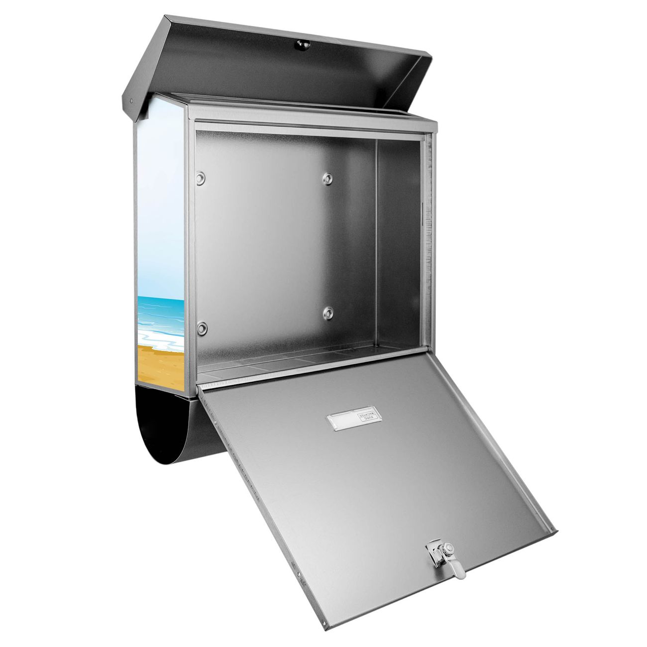 Der Briefkasten besteht aus Edelstahl, einem hochwertigen Material das rostfrei und äußerst unempfindlich gegenüber Witterungseinflüssen ist. Das Motiv besteht aus einer wetter- und UV-festen Folie, die Ihren Briefkasten zusätzlich vor Kratzern schützt. Der Postkasten ist je nach Auswahl 38 x 39 x 12 CM oder 38 x 31,5 x 12 cm (BxHxT) groß. Der Briefeinwurf ist 33,2cm x 3,1cm, Format DIN C4. Der Briefkasten wird mit Montagematerial und zwei Schlüsseln geliefert.