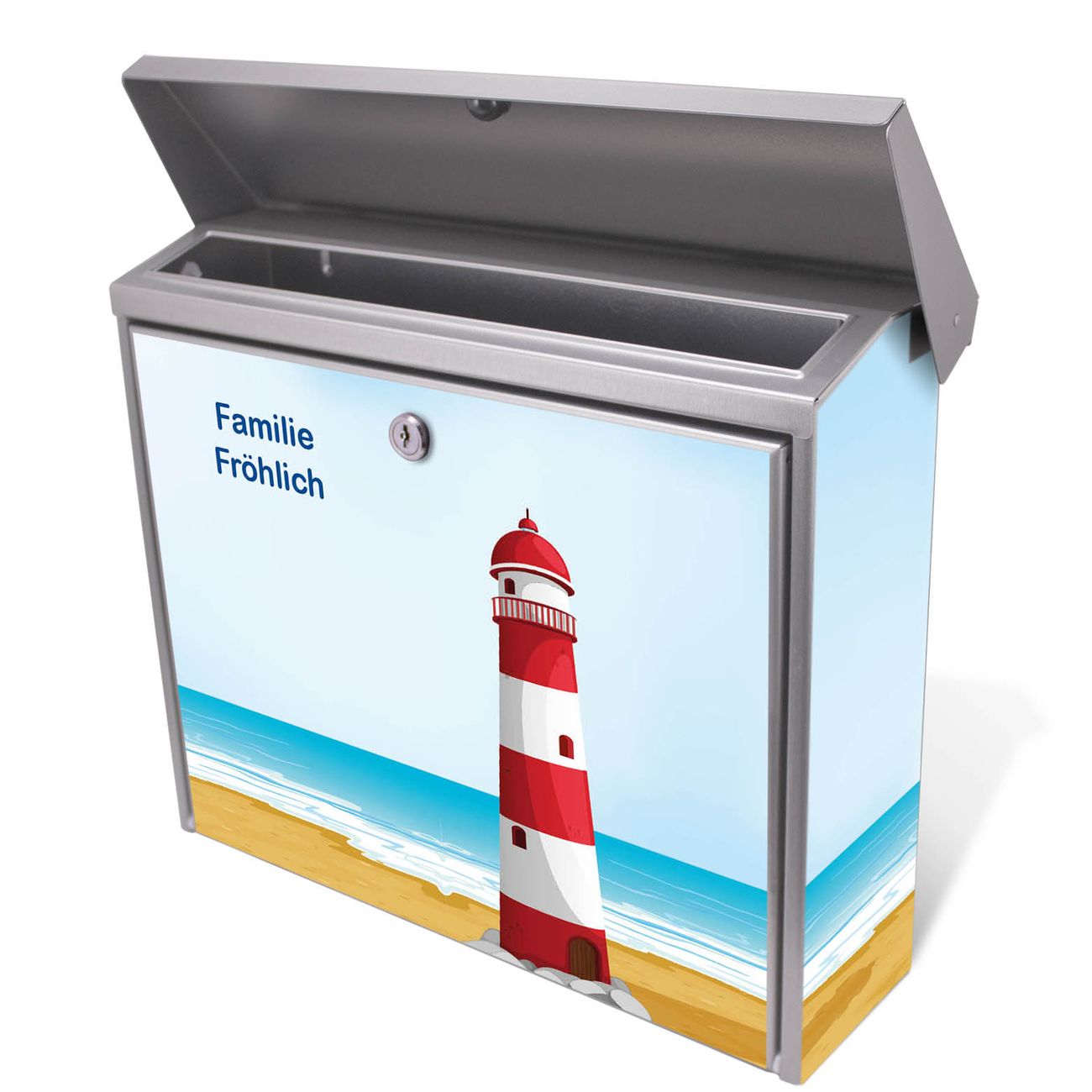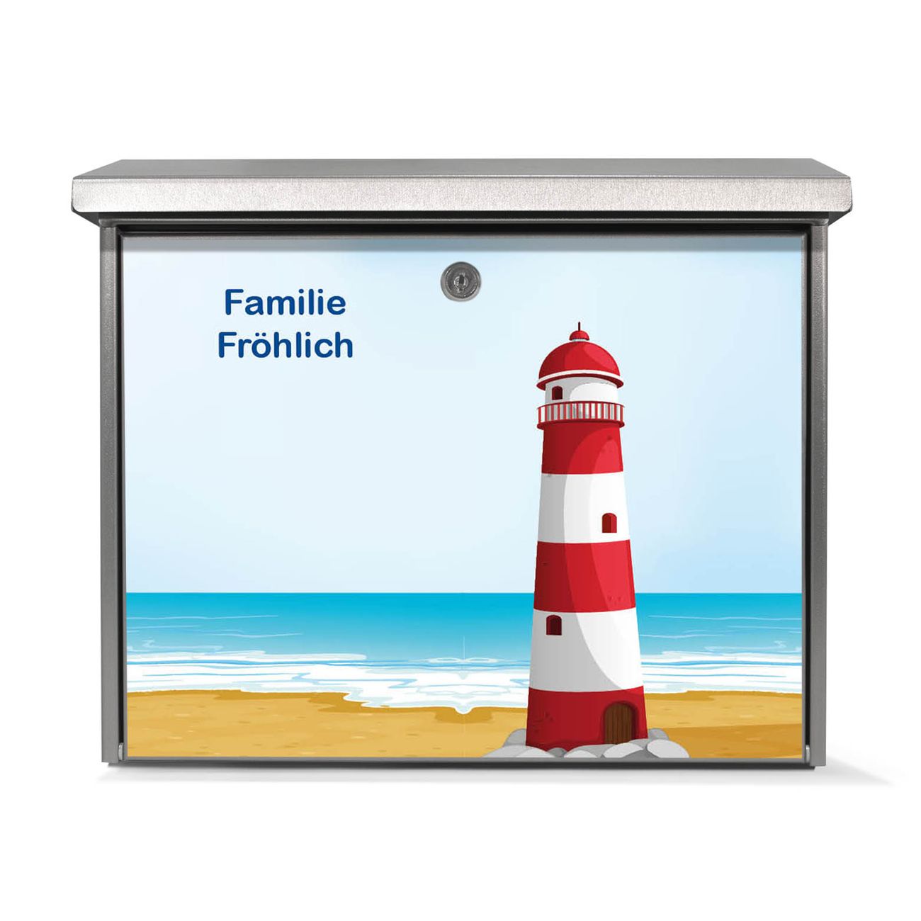 Der Postkasten mit Leuchtturm Illustration Motiv hat ein sehr ansprechendes und zeitloses Design. Unsere Motivpalette hält jede Menge Varianten bereit, ob klassisch, modern, verspielt oder witzig - für jeden haben wir das passende Motiv parat. Der Briefkasten ist das Aushängeschild Ihres Hauses.
