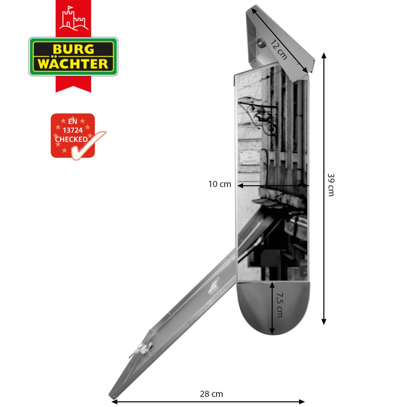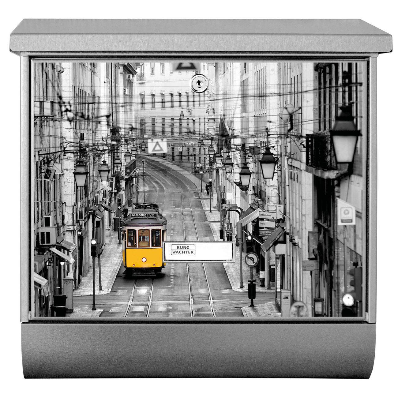 Der BURG-WÄCHTER Edelstahl Briefkasten mit Motiv Lissabon und Zeitungsrolle bietet Ihnen mit seinem Fassungsvermögen genügend Platz auch für große A4 Sendungen und Zeitschriften. Das integrierte Regendach schützt Ihre Post vor dem Eindringen von Regen.