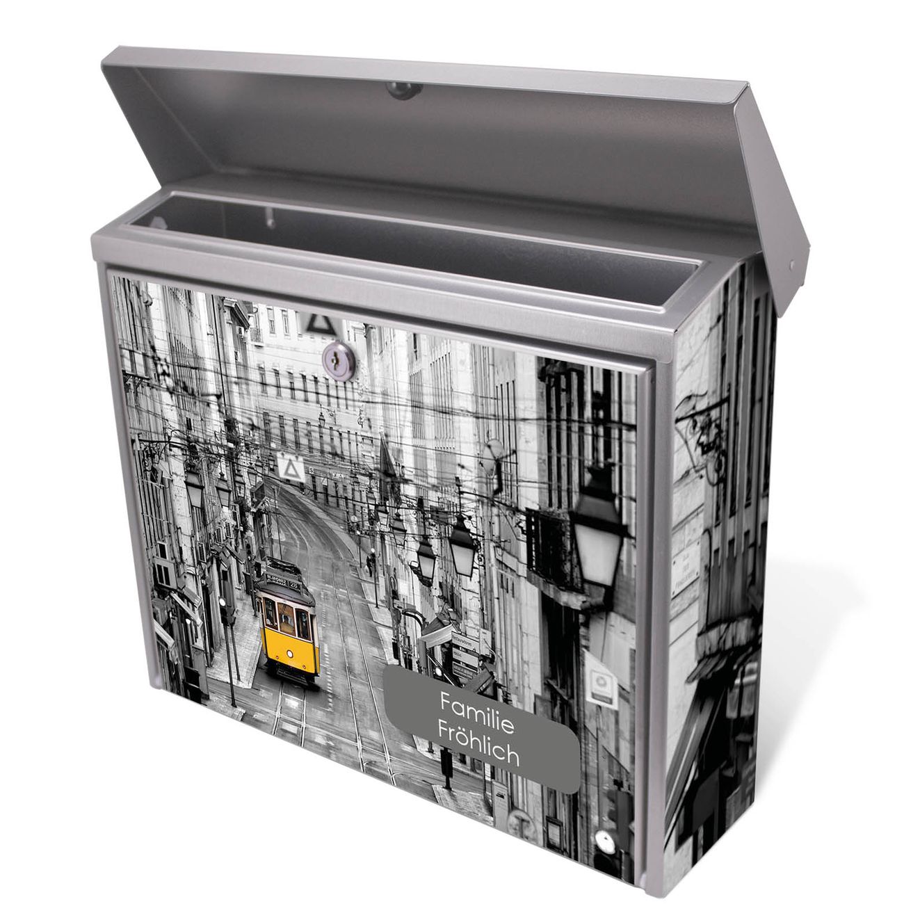 Der Postkasten mit Lissabon Motiv hat ein sehr ansprechendes und zeitloses Design. Unsere Motivpalette hält jede Menge Varianten bereit, ob klassisch, modern, verspielt oder witzig - für jeden haben wir das passende Motiv parat. Der Briefkasten ist das Aushängeschild Ihres Hauses.