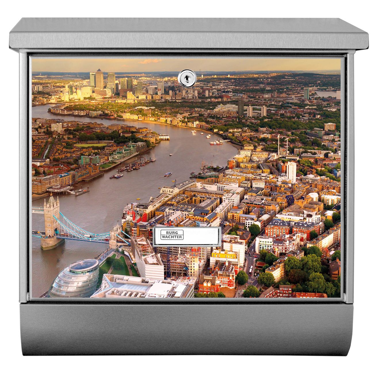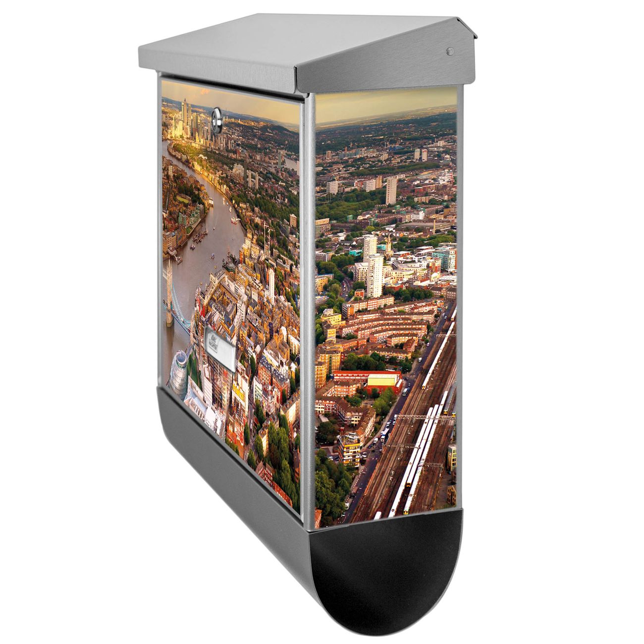 Der London Motivbriefkasten hat ein sehr ansprechendes und zeitloses Design. Unsere Motivpalette hält jede Menge Varianten bereit, ob klassisch, modern, verspielt oder witzig - für jeden haben wir das passende Motiv parat. Der Briefkasten mit Zeitungsfach ist Ihr Aushängeschild, heben Sie Sich ab ohne auf Funktionalität zu verzichten.
