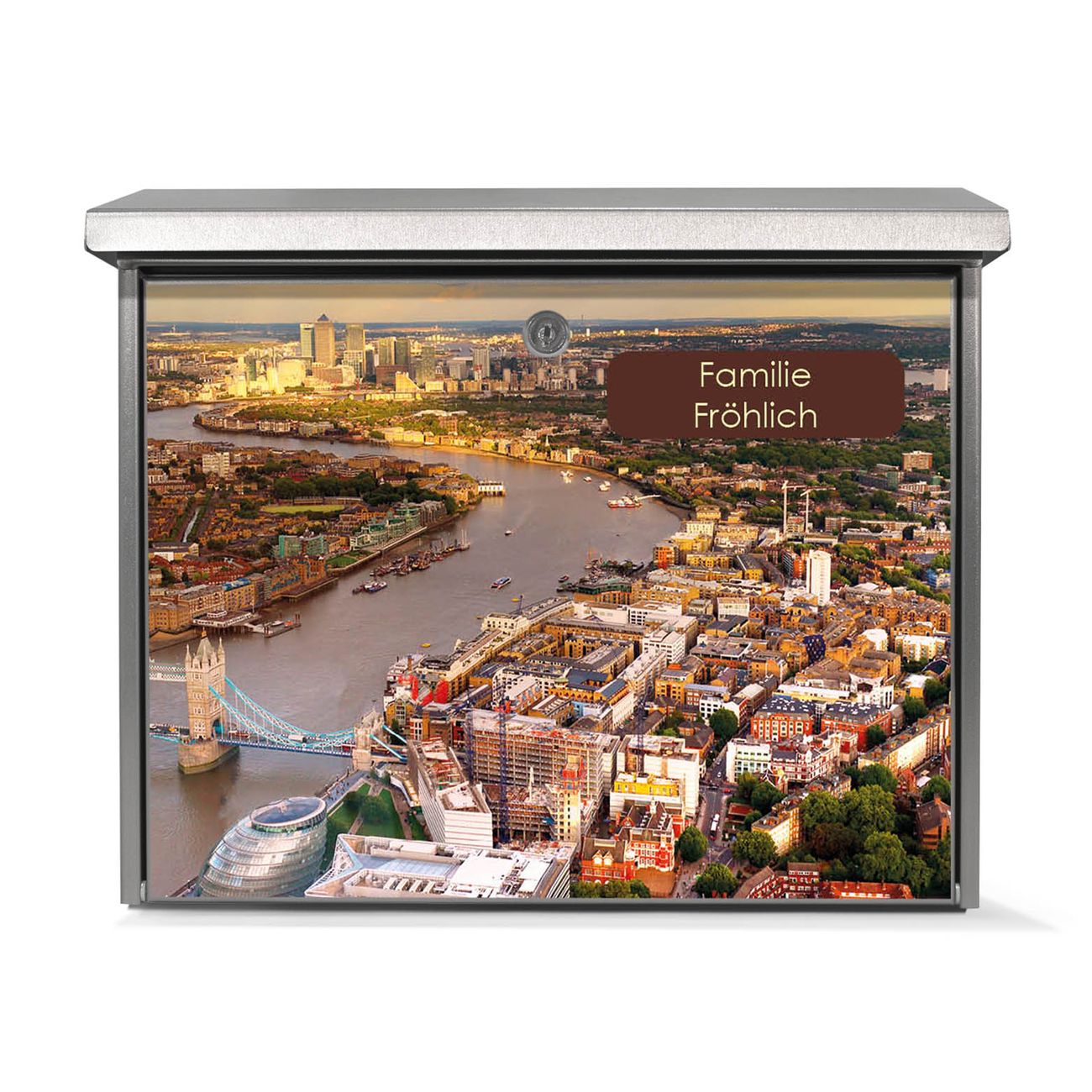 Der Postkasten mit London Motiv hat ein sehr ansprechendes und zeitloses Design. Unsere Motivpalette hält jede Menge Varianten bereit, ob klassisch, modern, verspielt oder witzig - für jeden haben wir das passende Motiv parat. Der Briefkasten ist das Aushängeschild Ihres Hauses.
