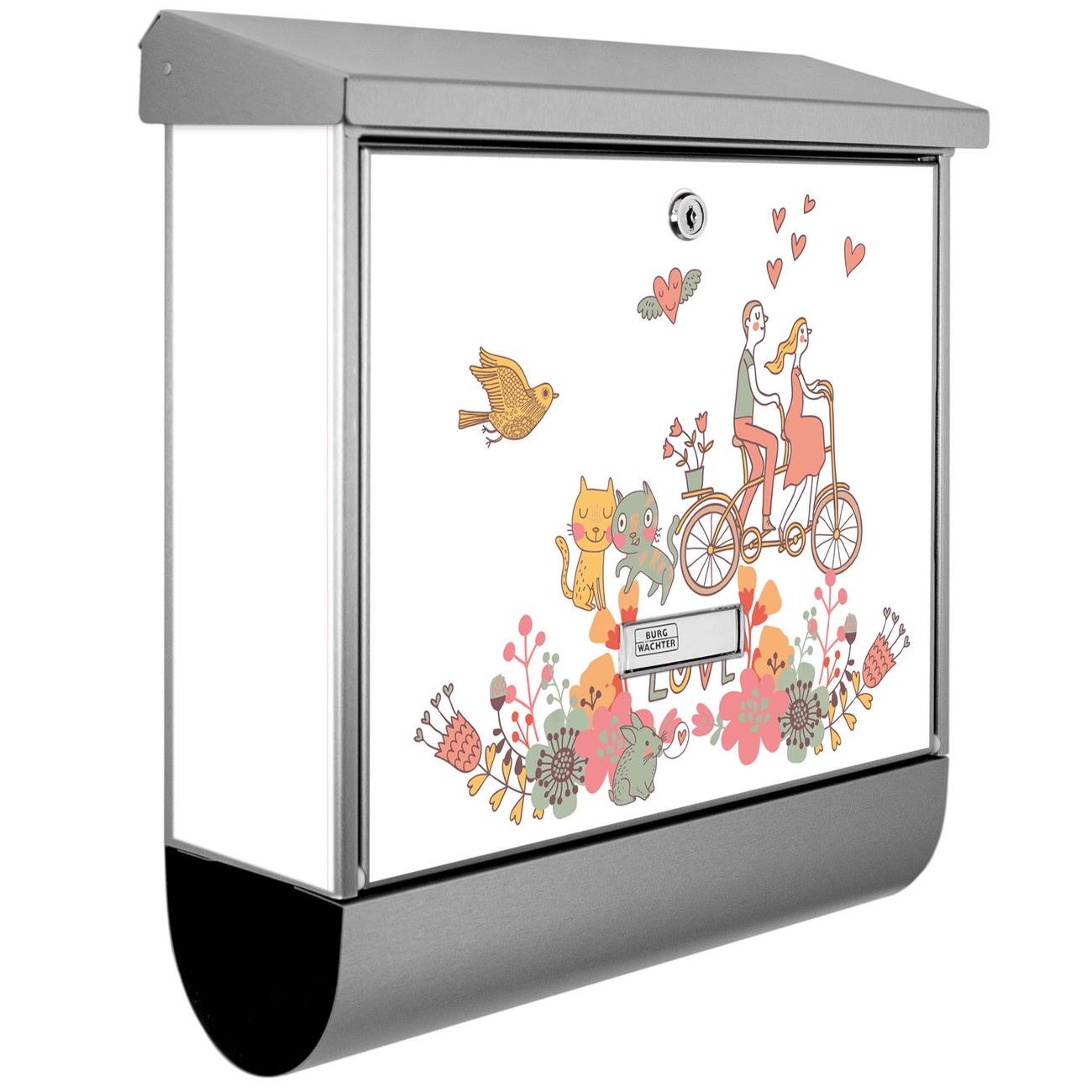 Der BURG-WÄCHTER Edelstahl Briefkasten mit Motiv Love und Zeitungsrolle bietet Ihnen mit seinem Fassungsvermögen genügend Platz auch für große A4 Sendungen und Zeitschriften. Das integrierte Regendach schützt Ihre Post vor dem Eindringen von Regen.