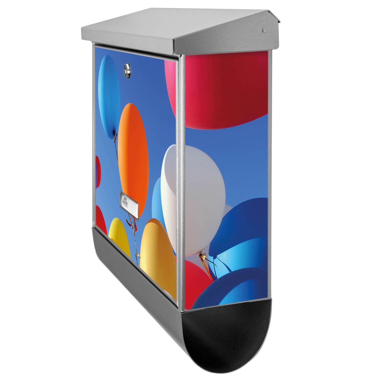 Der Luftballons Motivbriefkasten hat ein sehr ansprechendes und zeitloses Design. Unsere Motivpalette hält jede Menge Varianten bereit, ob klassisch, modern, verspielt oder witzig - für jeden haben wir das passende Motiv parat. Der Briefkasten mit Zeitungsfach ist Ihr Aushängeschild, heben Sie Sich ab ohne auf Funktionalität zu verzichten.