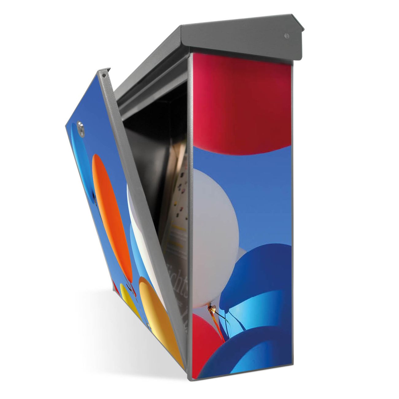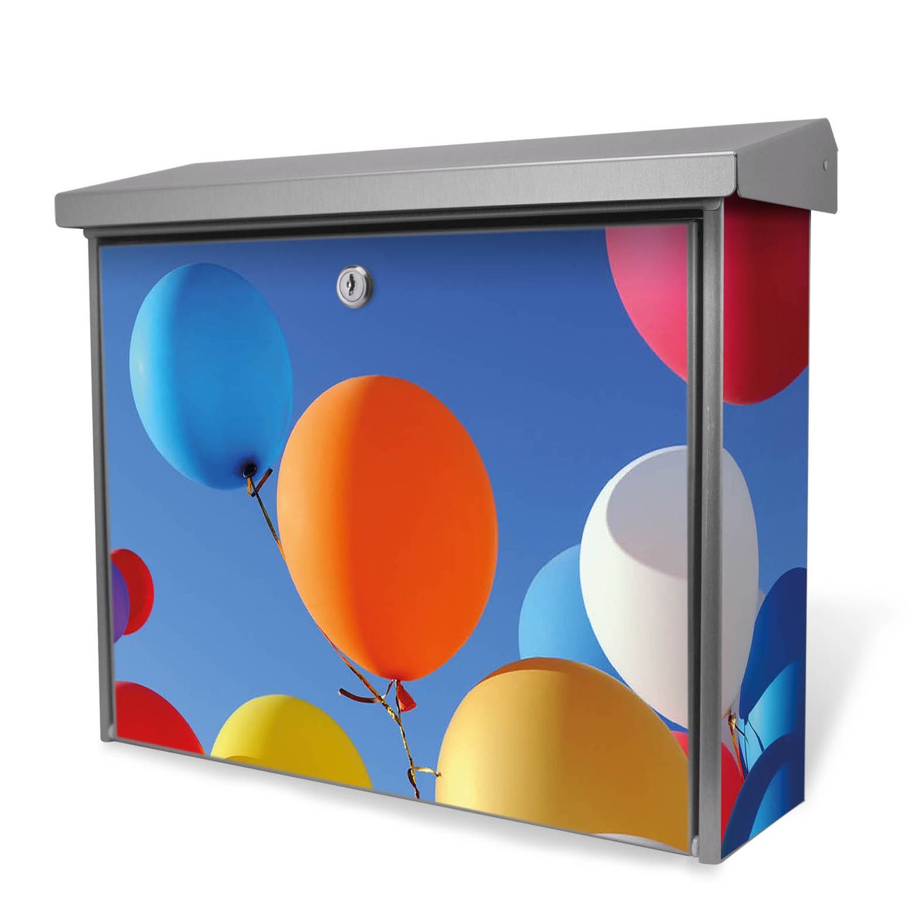Der Postkasten mit Luftballons Motiv hat ein sehr ansprechendes und zeitloses Design. Unsere Motivpalette hält jede Menge Varianten bereit, ob klassisch, modern, verspielt oder witzig - für jeden haben wir das passende Motiv parat. Der Briefkasten ist das Aushängeschild Ihres Hauses.