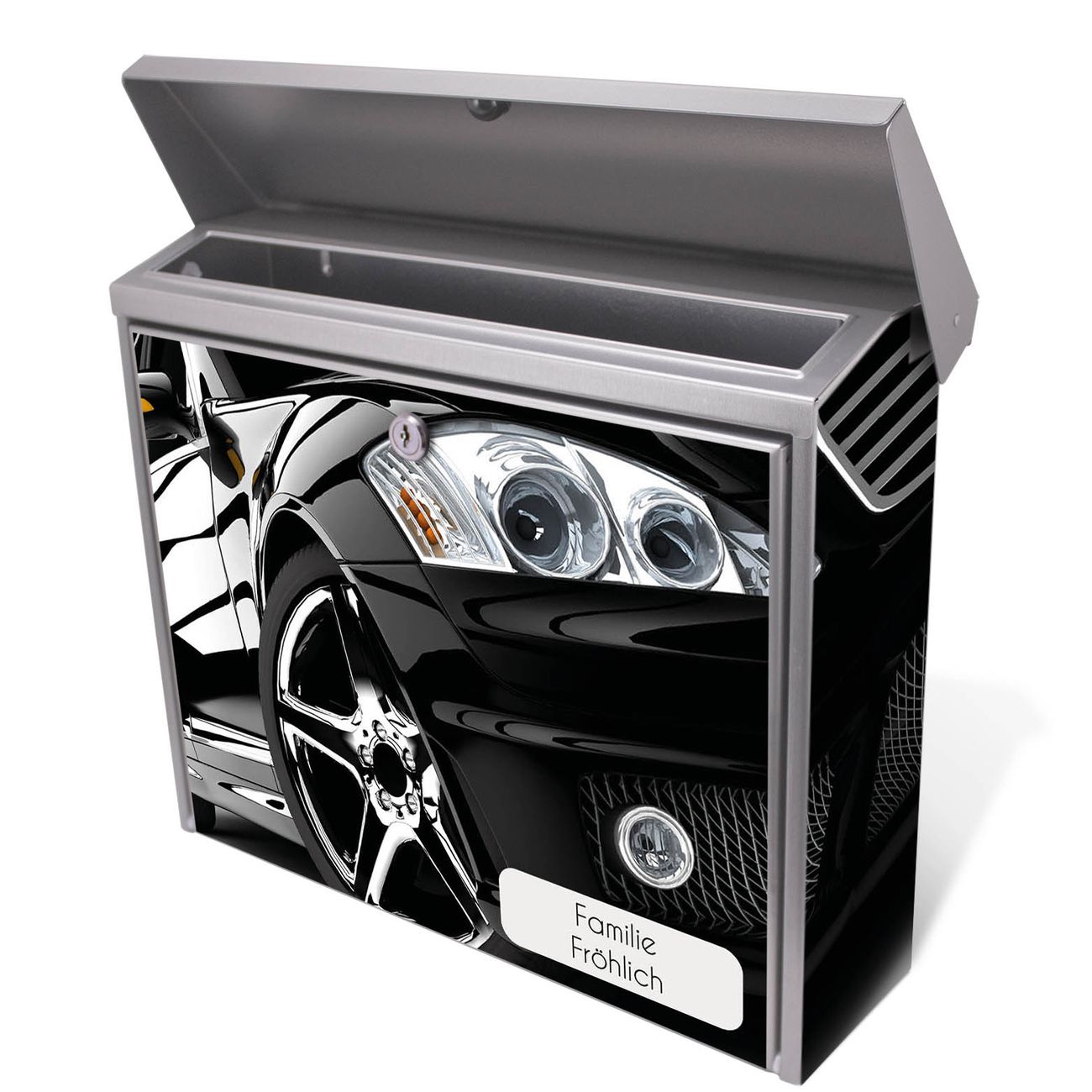 Der Postkasten mit Luxus Car Motiv hat ein sehr ansprechendes und zeitloses Design. Unsere Motivpalette hält jede Menge Varianten bereit, ob klassisch, modern, verspielt oder witzig - für jeden haben wir das passende Motiv parat. Der Briefkasten ist das Aushängeschild Ihres Hauses.