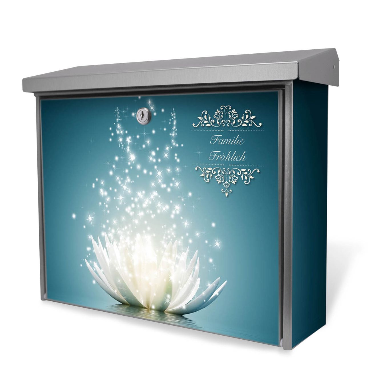 Der Postkasten mit Magische Lotusblüte Motiv hat ein sehr ansprechendes und zeitloses Design. Unsere Motivpalette hält jede Menge Varianten bereit, ob klassisch, modern, verspielt oder witzig - für jeden haben wir das passende Motiv parat. Der Briefkasten ist das Aushängeschild Ihres Hauses.