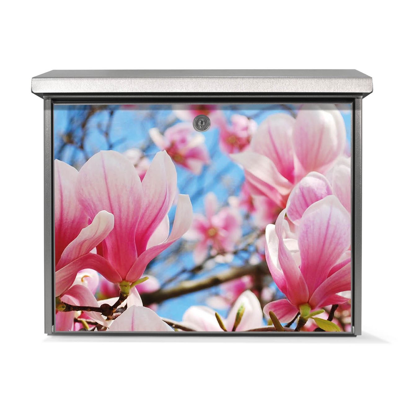 Der Postkasten mit Magnolienbaum Motiv hat ein sehr ansprechendes und zeitloses Design. Unsere Motivpalette hält jede Menge Varianten bereit, ob klassisch, modern, verspielt oder witzig - für jeden haben wir das passende Motiv parat. Der Briefkasten ist das Aushängeschild Ihres Hauses.