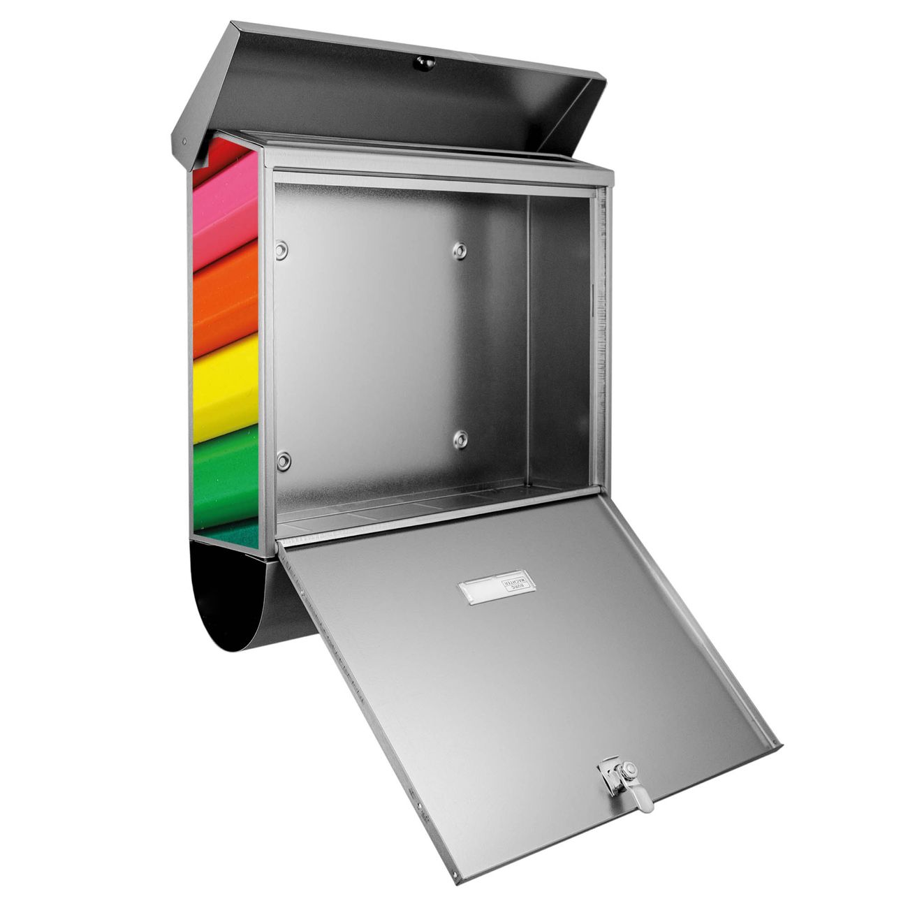 Der BURG-WÄCHTER Edelstahl Briefkasten mit Motiv Malstifte und Zeitungsrolle bietet Ihnen mit seinem Fassungsvermögen genügend Platz auch für große A4 Sendungen und Zeitschriften. Das integrierte Regendach schützt Ihre Post vor dem Eindringen von Regen.