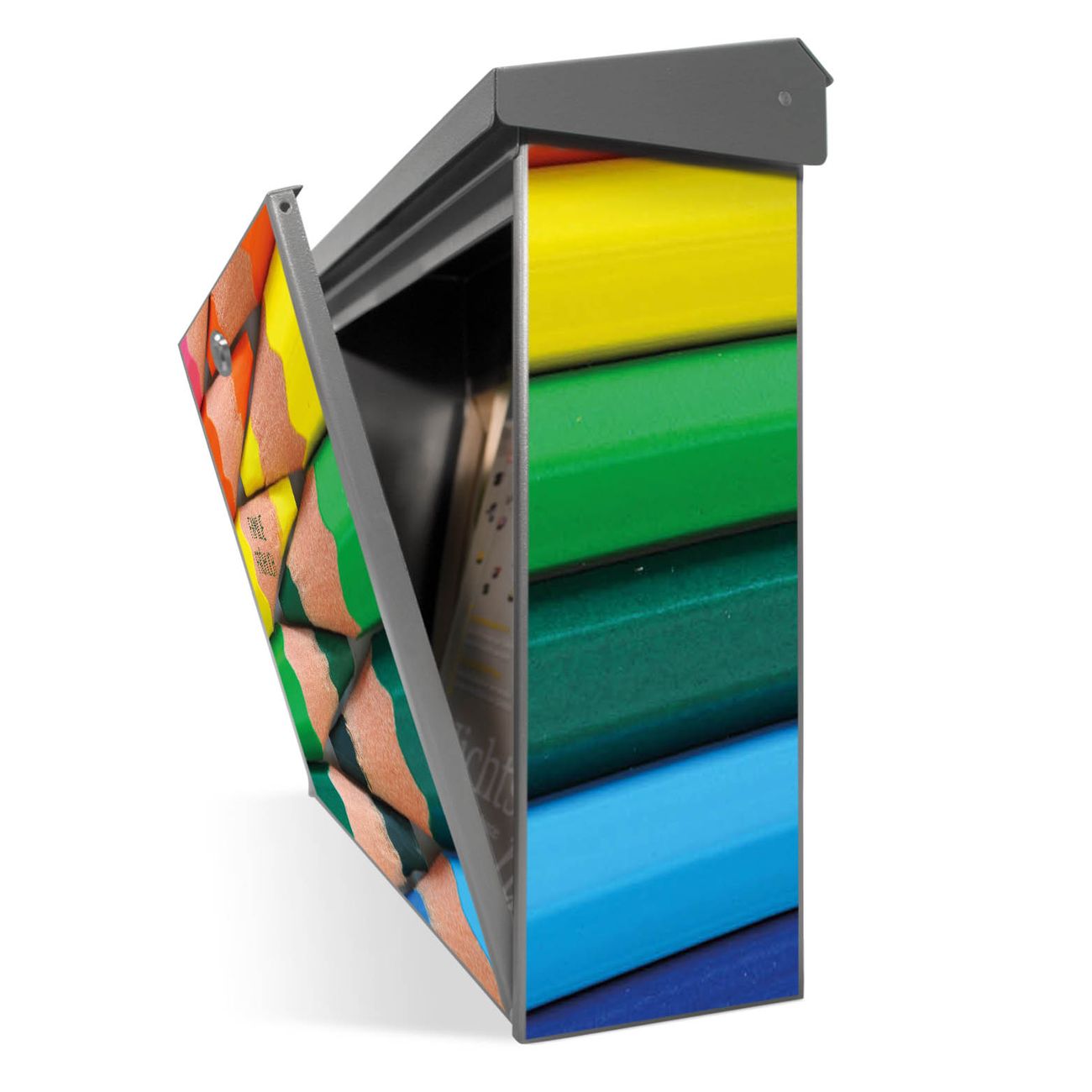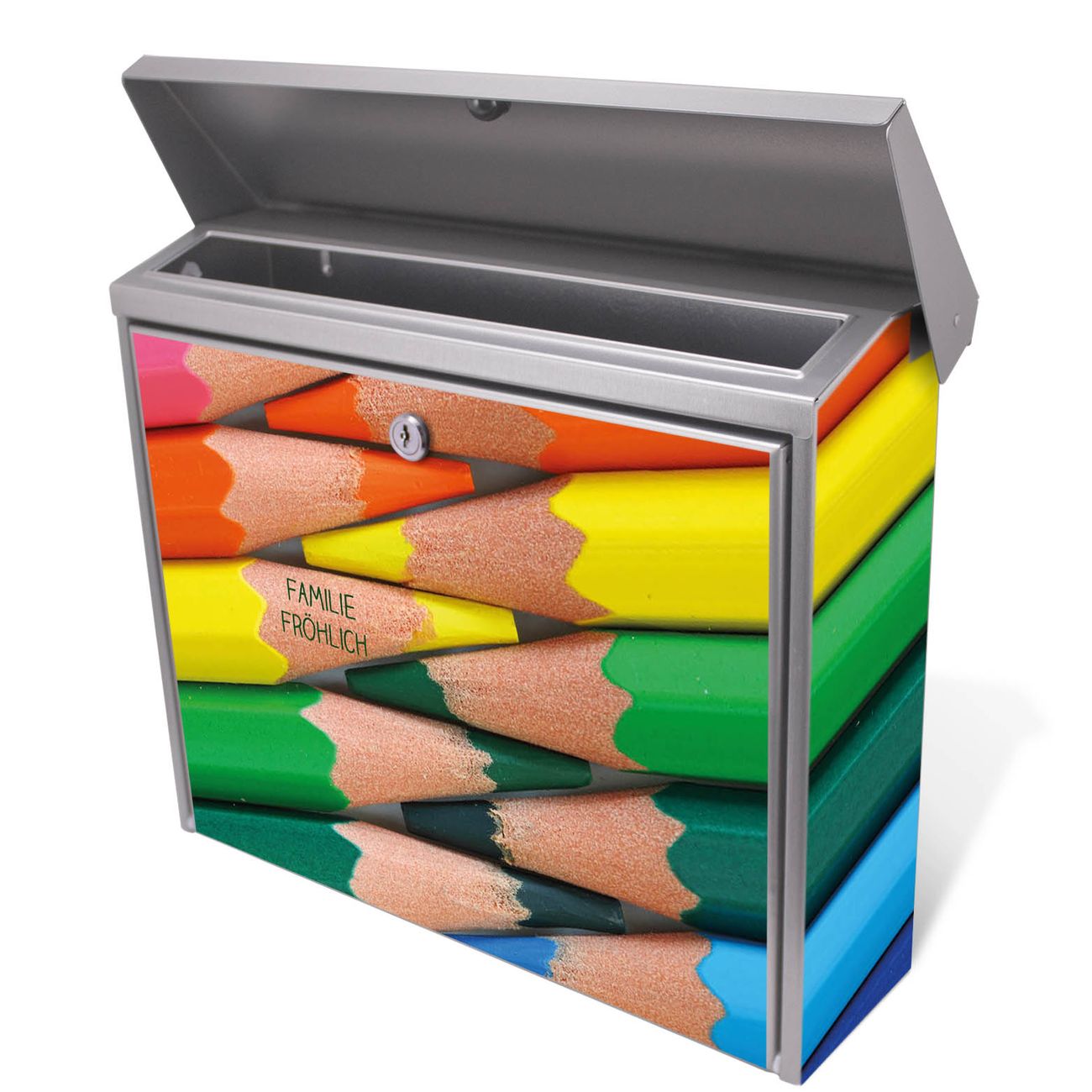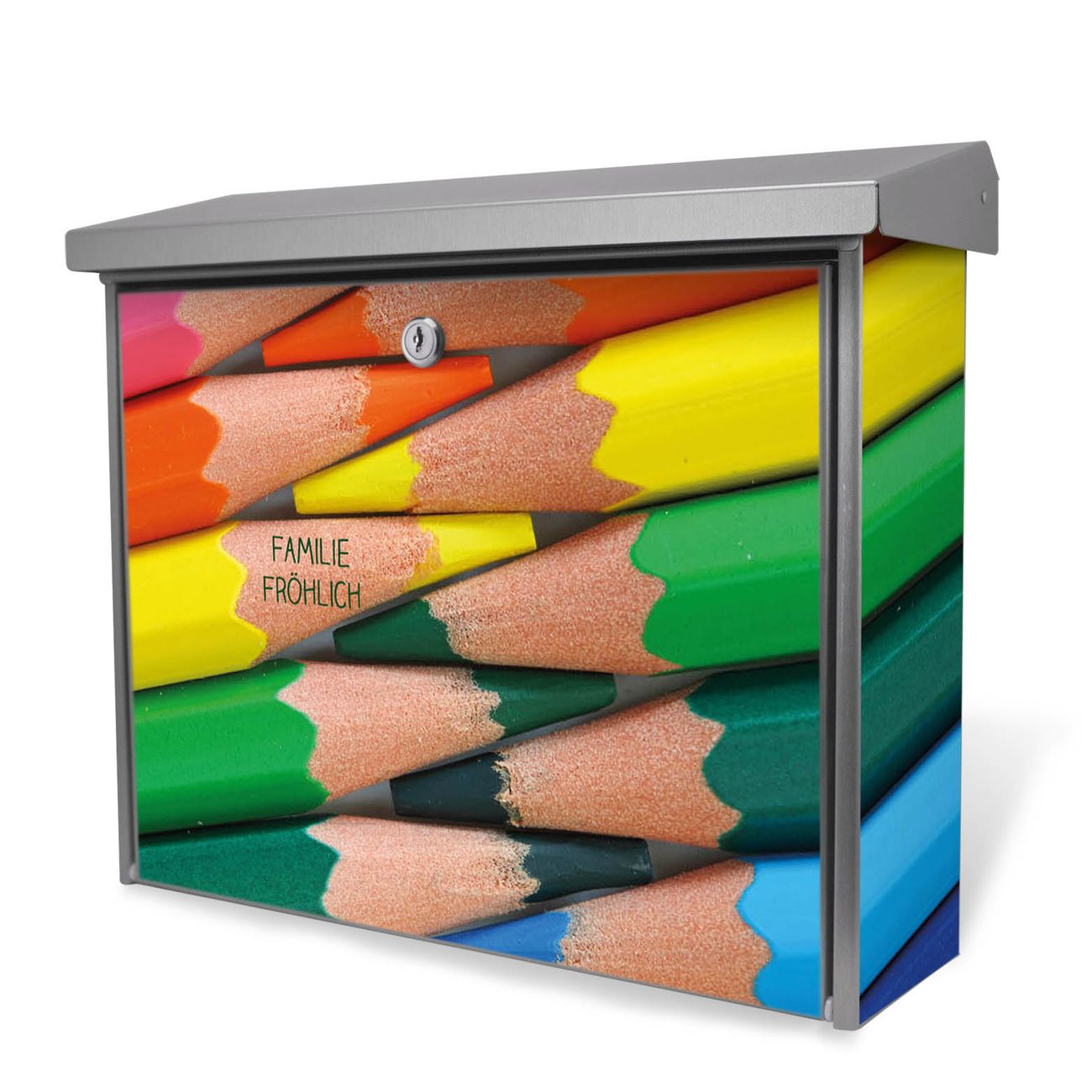 Der Postkasten mit Malstifte Motiv hat ein sehr ansprechendes und zeitloses Design. Unsere Motivpalette hält jede Menge Varianten bereit, ob klassisch, modern, verspielt oder witzig - für jeden haben wir das passende Motiv parat. Der Briefkasten ist das Aushängeschild Ihres Hauses.