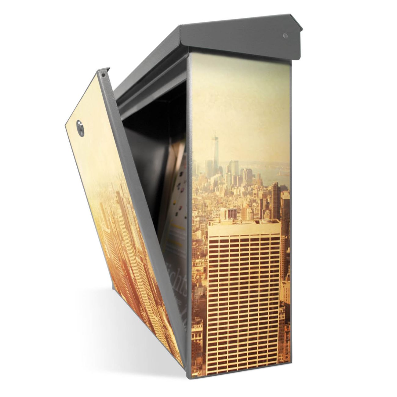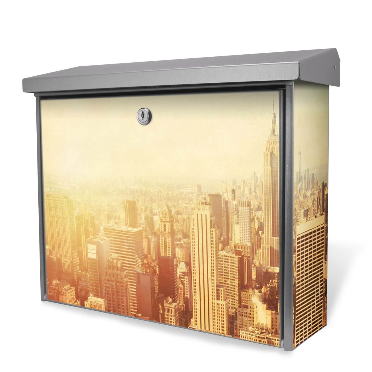 Der Postkasten mit Manhattan 2 Motiv hat ein sehr ansprechendes und zeitloses Design. Unsere Motivpalette hält jede Menge Varianten bereit, ob klassisch, modern, verspielt oder witzig - für jeden haben wir das passende Motiv parat. Der Briefkasten ist das Aushängeschild Ihres Hauses.