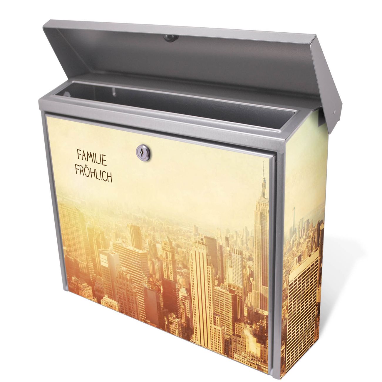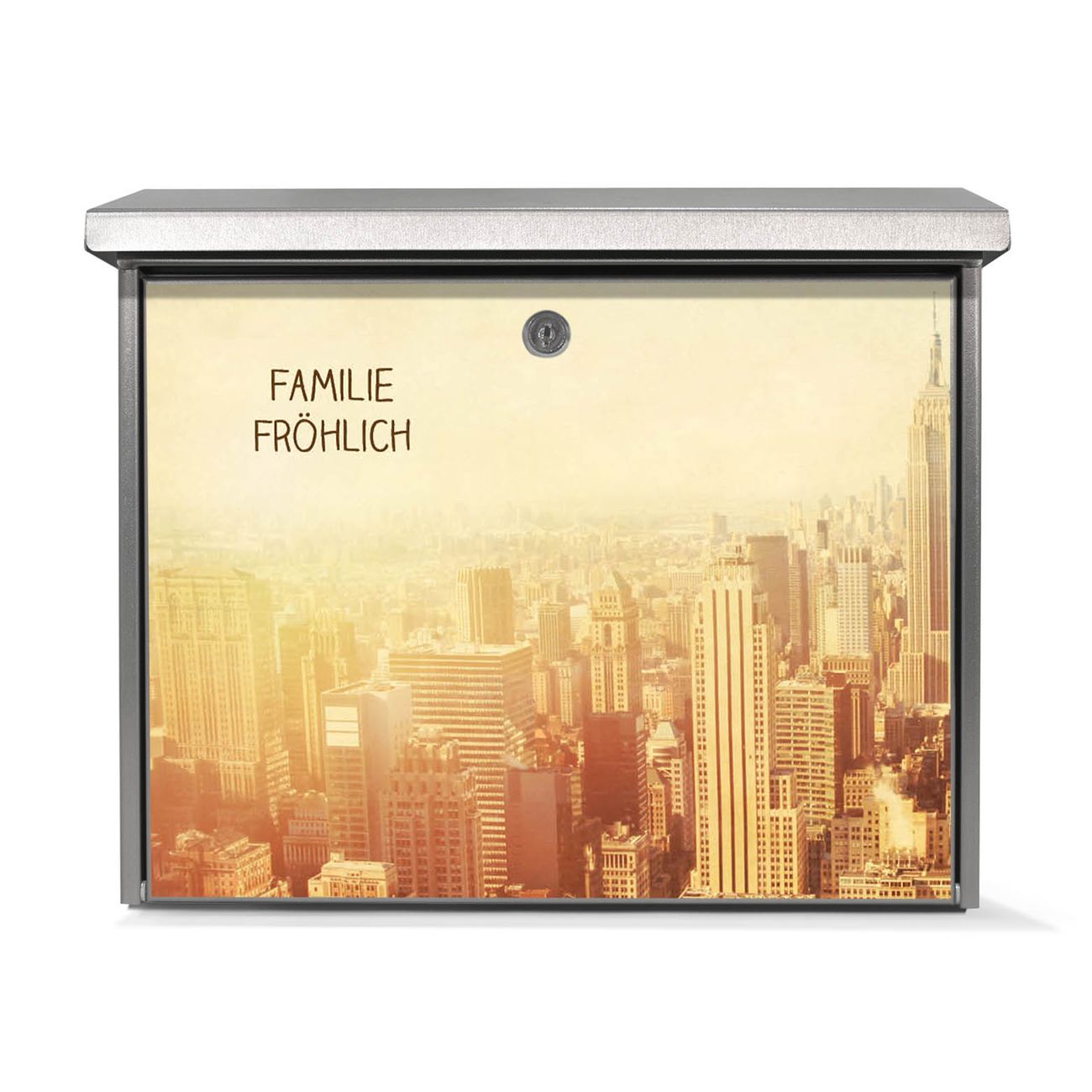 Der Postkasten mit Manhattan 2 Motiv hat ein sehr ansprechendes und zeitloses Design. Unsere Motivpalette hält jede Menge Varianten bereit, ob klassisch, modern, verspielt oder witzig - für jeden haben wir das passende Motiv parat. Der Briefkasten ist das Aushängeschild Ihres Hauses.