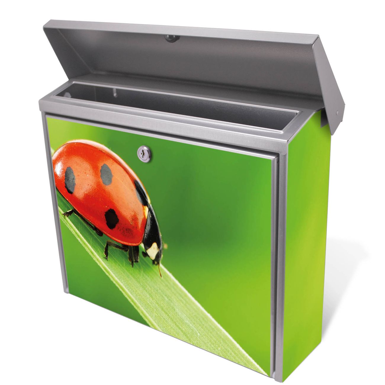 Der Postkasten mit Marienkäfer Motiv hat ein sehr ansprechendes und zeitloses Design. Unsere Motivpalette hält jede Menge Varianten bereit, ob klassisch, modern, verspielt oder witzig - für jeden haben wir das passende Motiv parat. Der Briefkasten ist das Aushängeschild Ihres Hauses.
