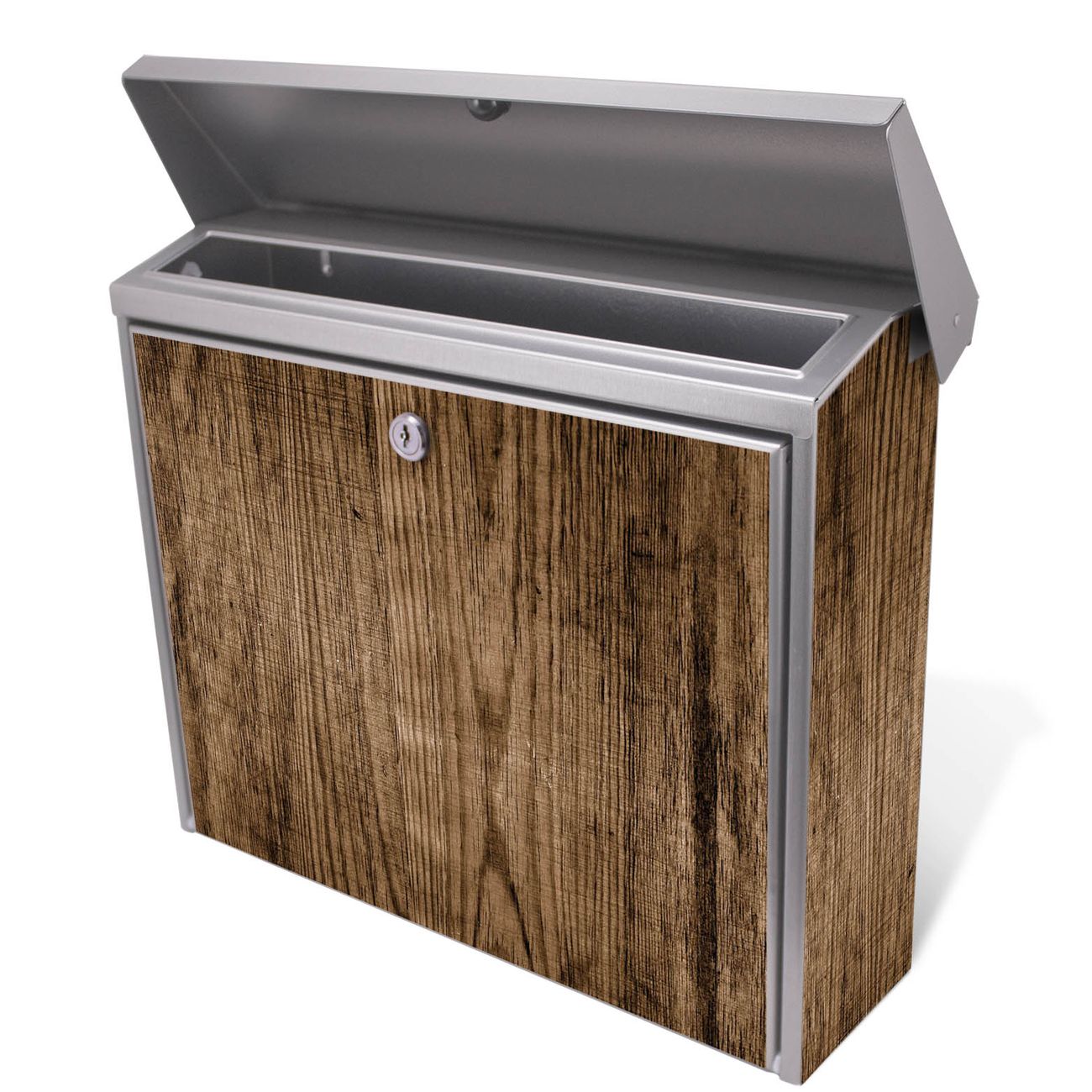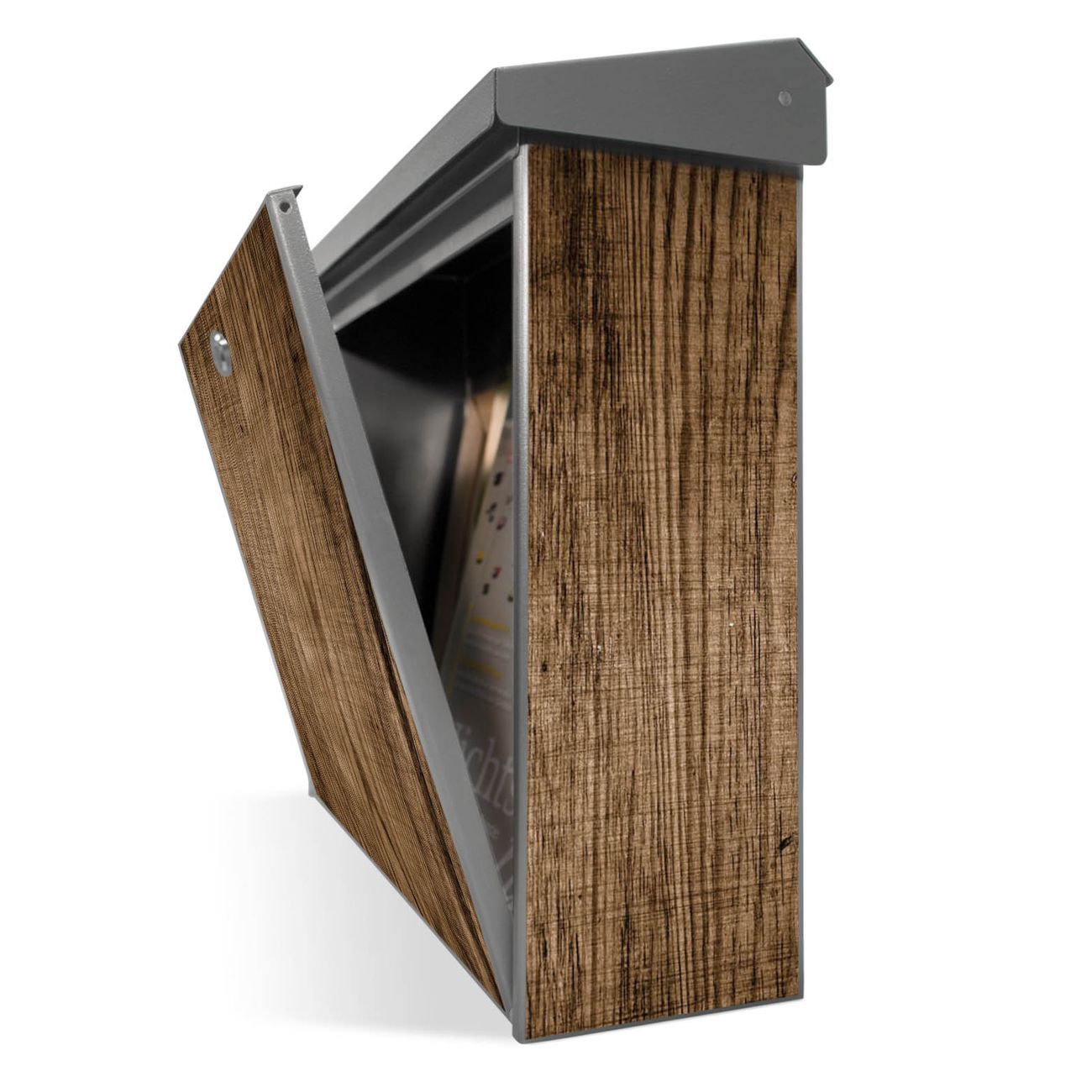 Der Postkasten mit Maserung Dunkel Motiv hat ein sehr ansprechendes und zeitloses Design. Unsere Motivpalette hält jede Menge Varianten bereit, ob klassisch, modern, verspielt oder witzig - für jeden haben wir das passende Motiv parat. Der Briefkasten ist das Aushängeschild Ihres Hauses.