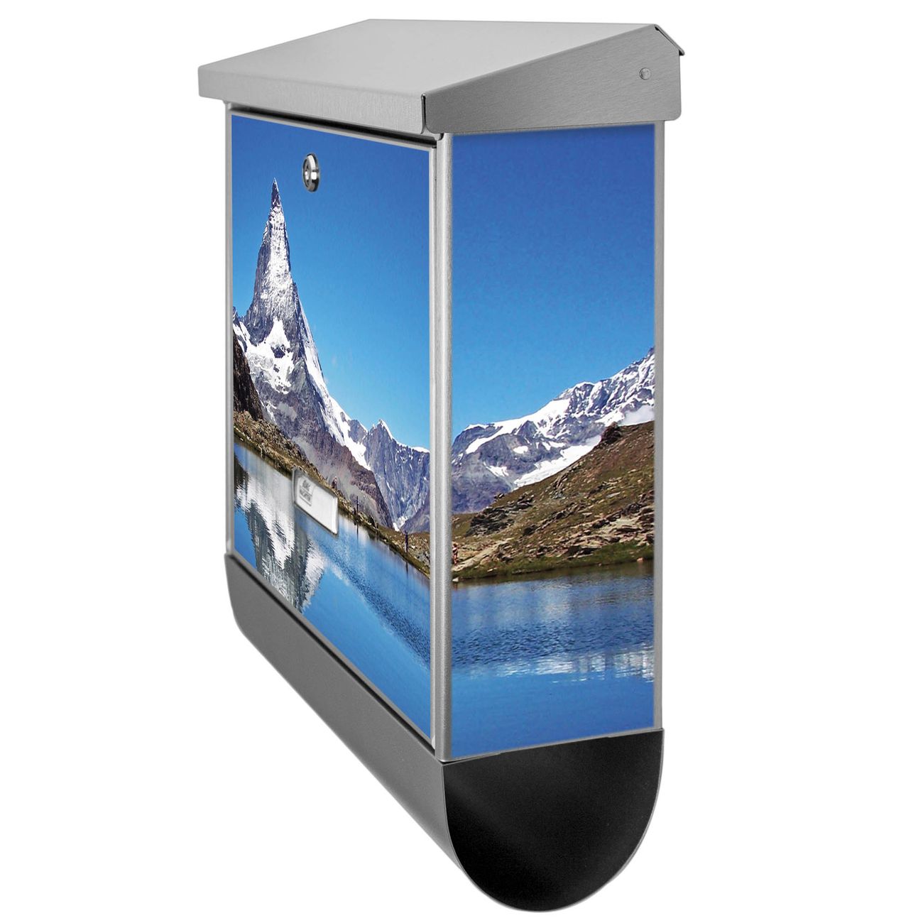 Der Matterhorn Motivbriefkasten hat ein sehr ansprechendes und zeitloses Design. Unsere Motivpalette hält jede Menge Varianten bereit, ob klassisch, modern, verspielt oder witzig - für jeden haben wir das passende Motiv parat. Der Briefkasten mit Zeitungsfach ist Ihr Aushängeschild, heben Sie Sich ab ohne auf Funktionalität zu verzichten.