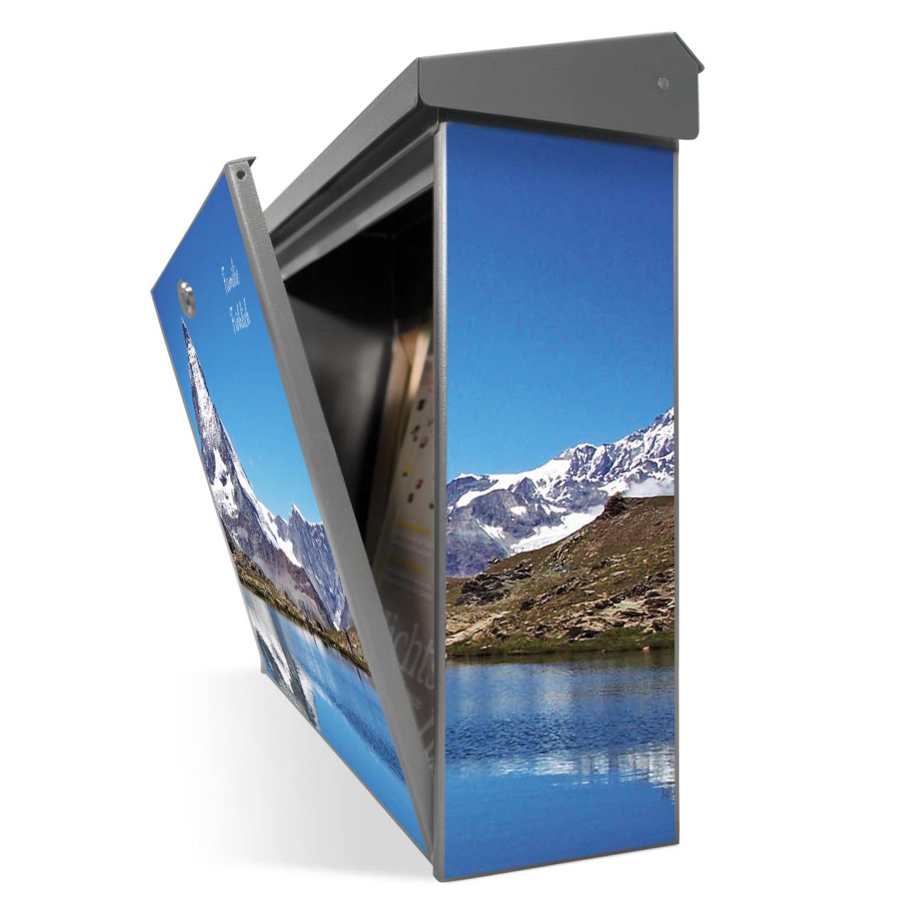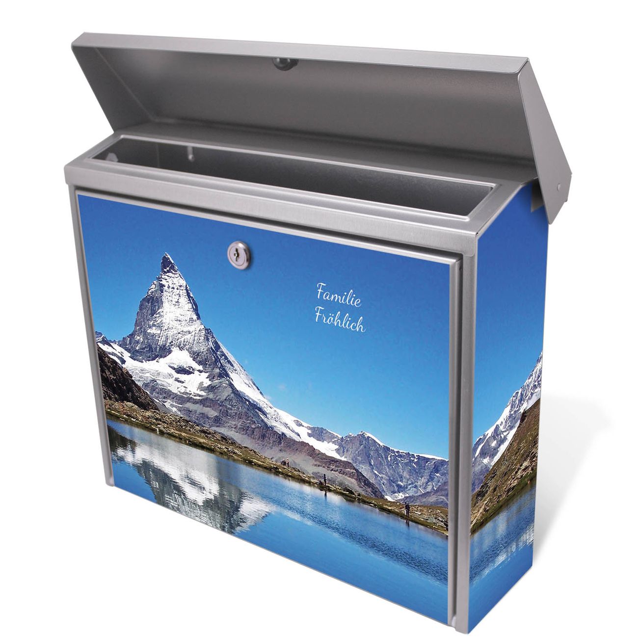 Der Postkasten mit Matterhorn Motiv hat ein sehr ansprechendes und zeitloses Design. Unsere Motivpalette hält jede Menge Varianten bereit, ob klassisch, modern, verspielt oder witzig - für jeden haben wir das passende Motiv parat. Der Briefkasten ist das Aushängeschild Ihres Hauses.