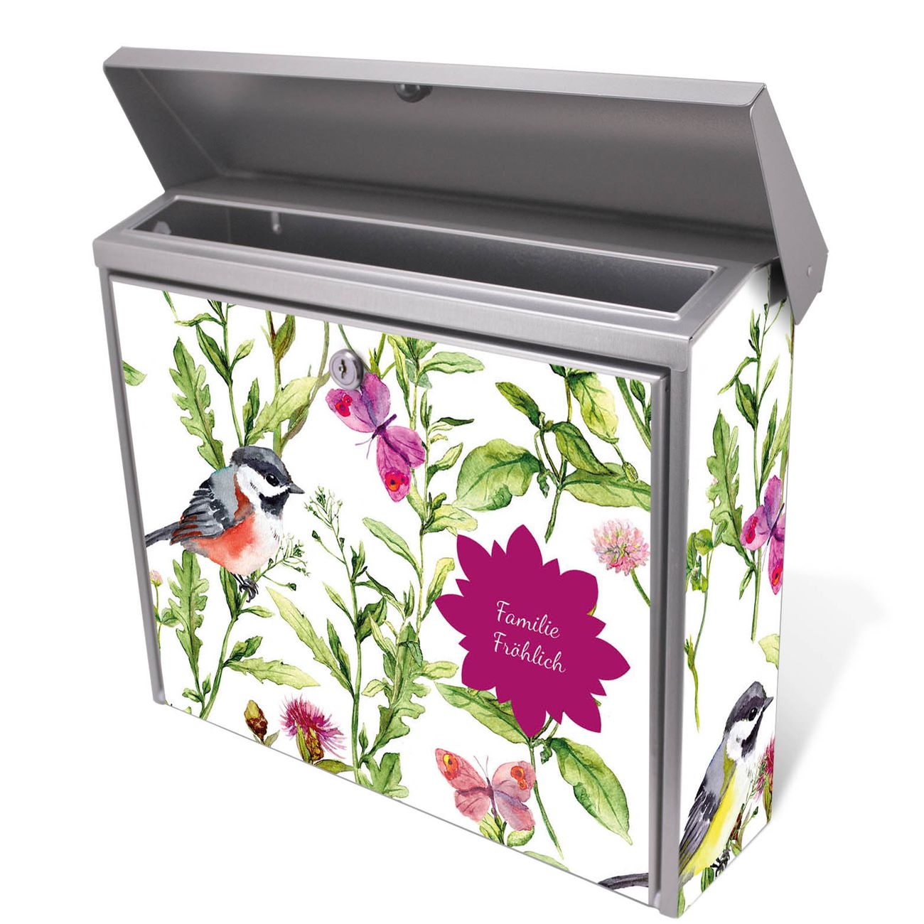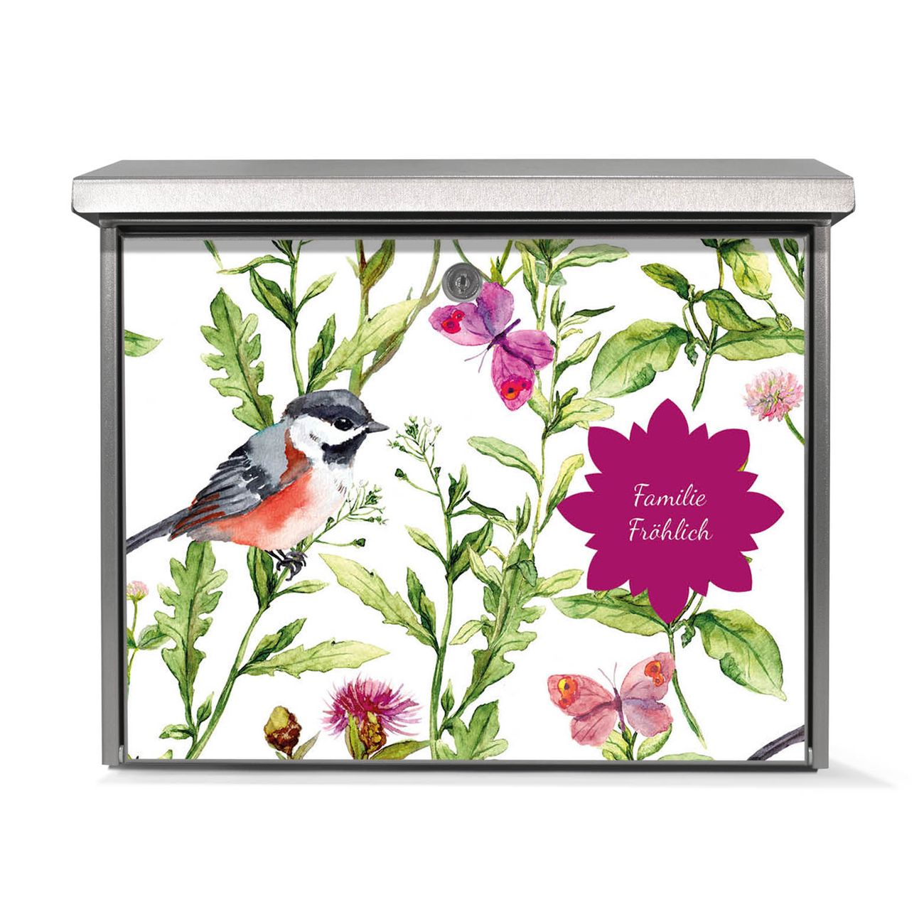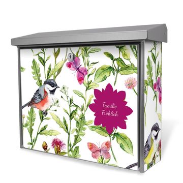 Der Postkasten mit Meisen im Klee Motiv hat ein sehr ansprechendes und zeitloses Design. Unsere Motivpalette hält jede Menge Varianten bereit, ob klassisch, modern, verspielt oder witzig - für jeden haben wir das passende Motiv parat. Der Briefkasten ist das Aushängeschild Ihres Hauses.