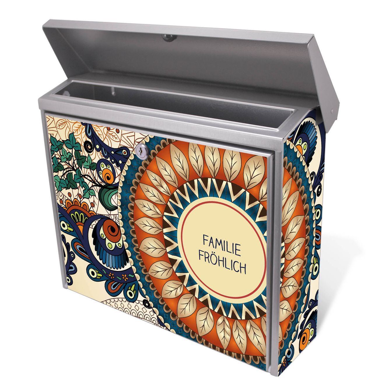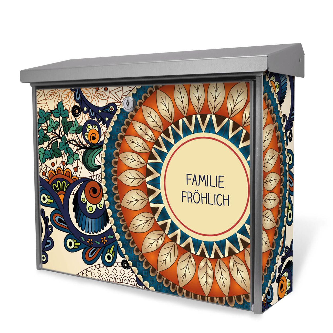 Der Postkasten mit Modernes Mandala Motiv hat ein sehr ansprechendes und zeitloses Design. Unsere Motivpalette hält jede Menge Varianten bereit, ob klassisch, modern, verspielt oder witzig - für jeden haben wir das passende Motiv parat. Der Briefkasten ist das Aushängeschild Ihres Hauses.