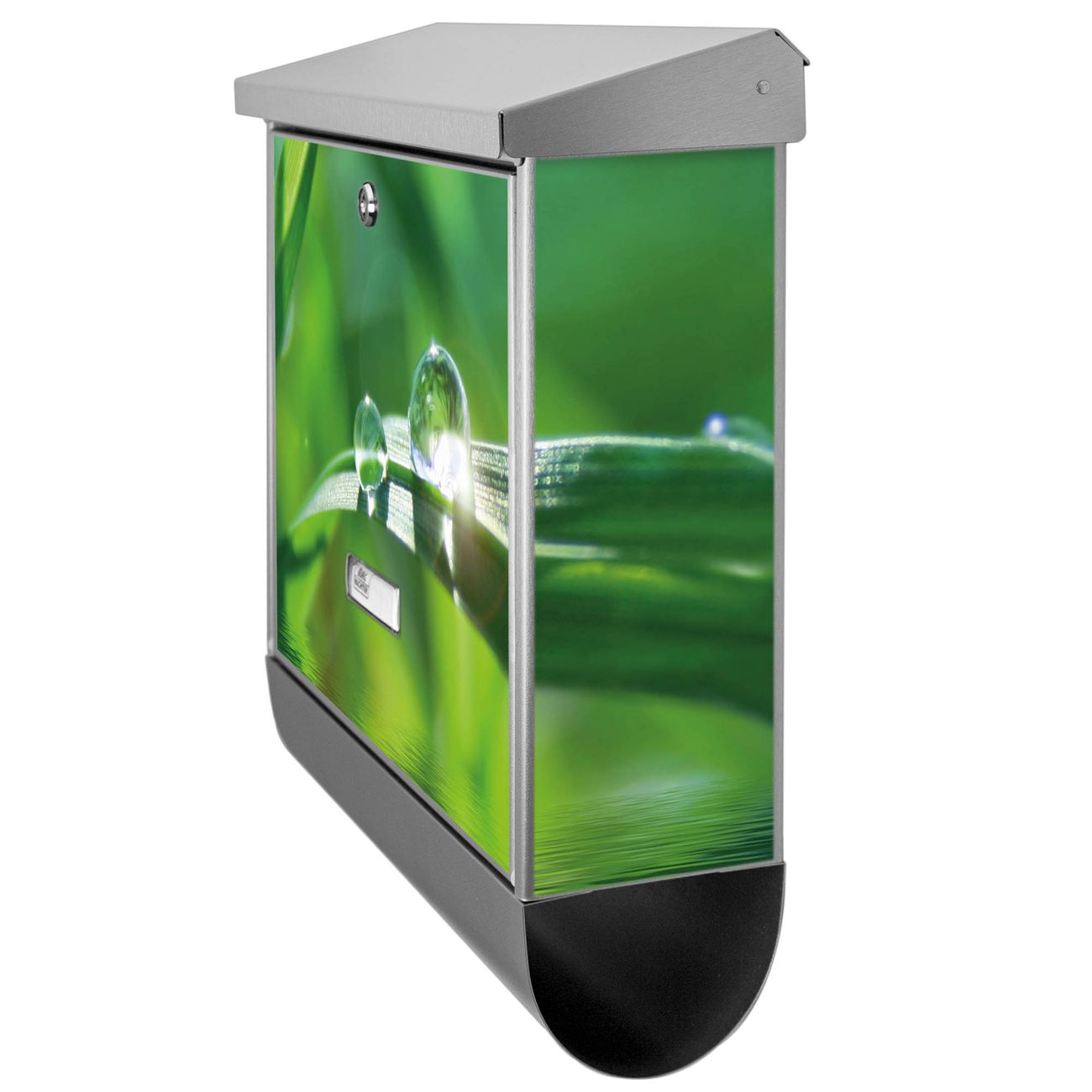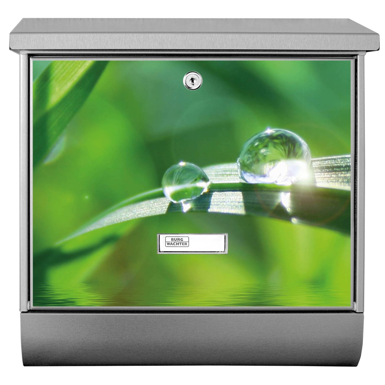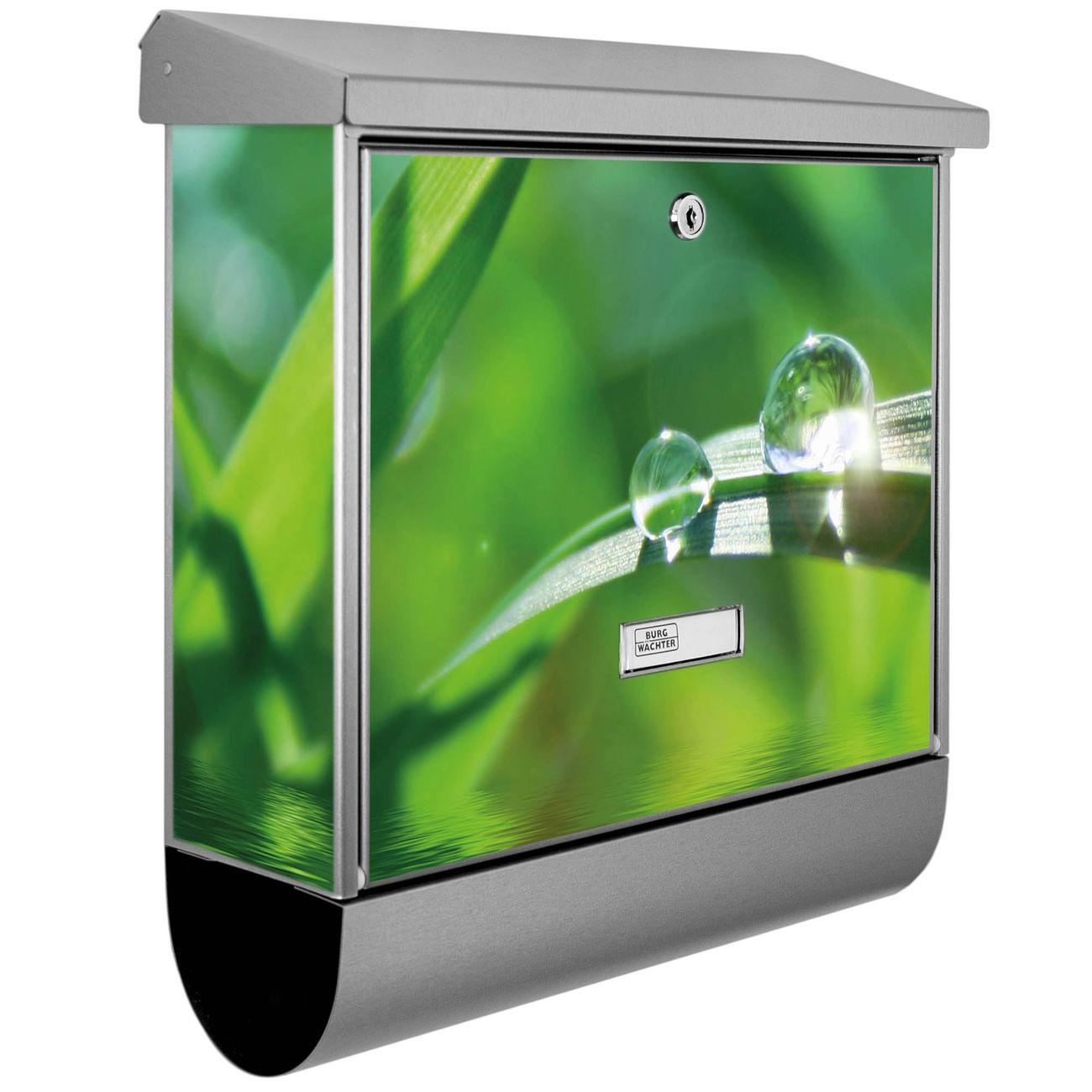 Der BURG-WÄCHTER Edelstahl Briefkasten mit Motiv Morgentau und Zeitungsrolle bietet Ihnen mit seinem Fassungsvermögen genügend Platz auch für große A4 Sendungen und Zeitschriften. Das integrierte Regendach schützt Ihre Post vor dem Eindringen von Regen.