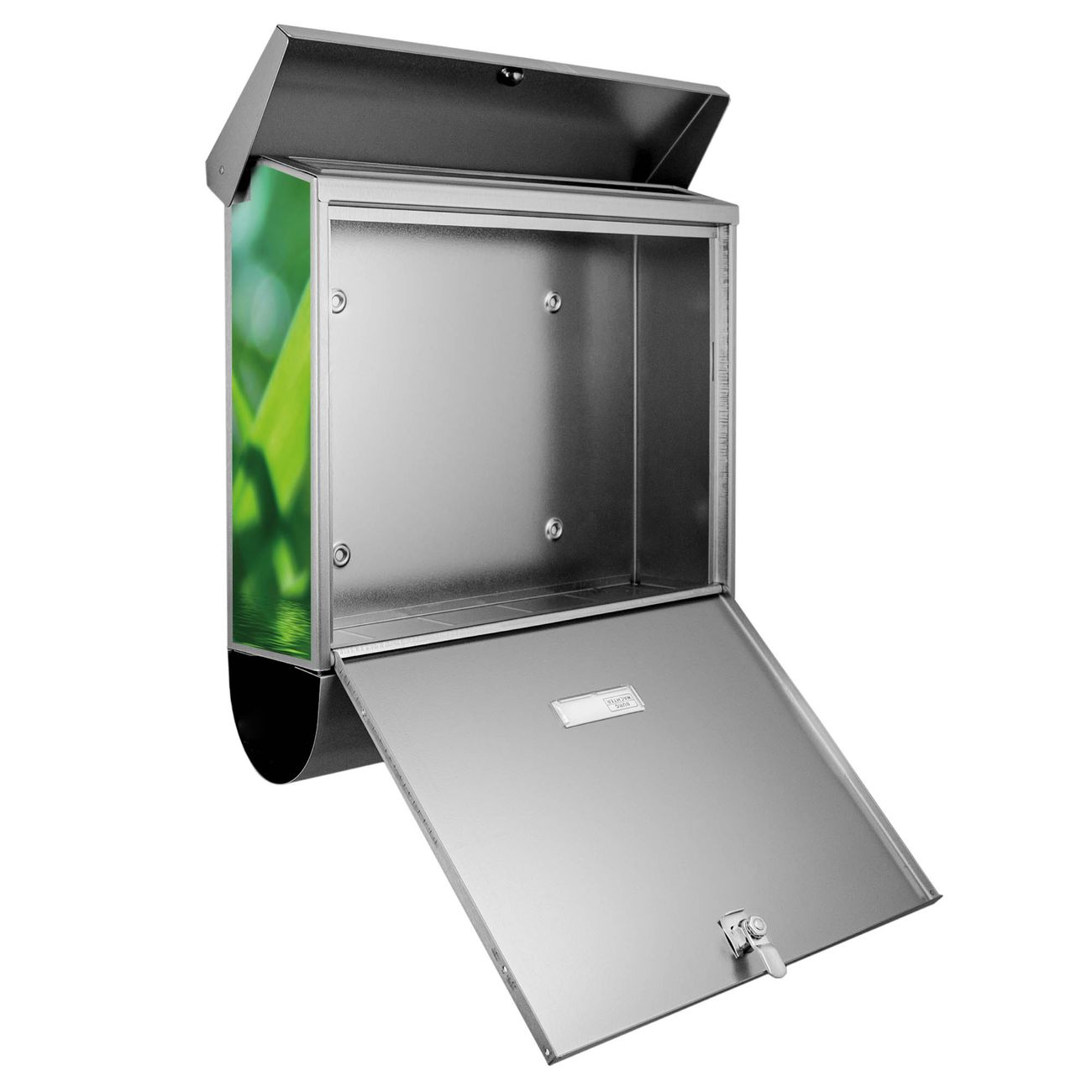 Der Briefkasten besteht aus Edelstahl, einem hochwertigen Material das rostfrei und äußerst unempfindlich gegenüber Witterungseinflüssen ist. Das Motiv besteht aus einer wetter- und UV-festen Folie, die Ihren Briefkasten zusätzlich vor Kratzern schützt. Der Postkasten ist je nach Auswahl 38 x 39 x 12 CM oder 38 x 31,5 x 12 cm (BxHxT) groß. Der Briefeinwurf ist 33,2cm x 3,1cm, Format DIN C4. Der Briefkasten wird mit Montagematerial und zwei Schlüsseln geliefert.