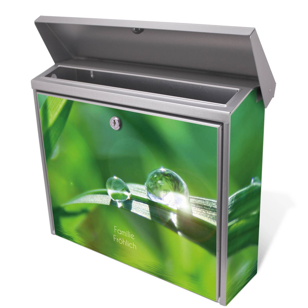 Der Postkasten mit Morgentau Motiv hat ein sehr ansprechendes und zeitloses Design. Unsere Motivpalette hält jede Menge Varianten bereit, ob klassisch, modern, verspielt oder witzig - für jeden haben wir das passende Motiv parat. Der Briefkasten ist das Aushängeschild Ihres Hauses.