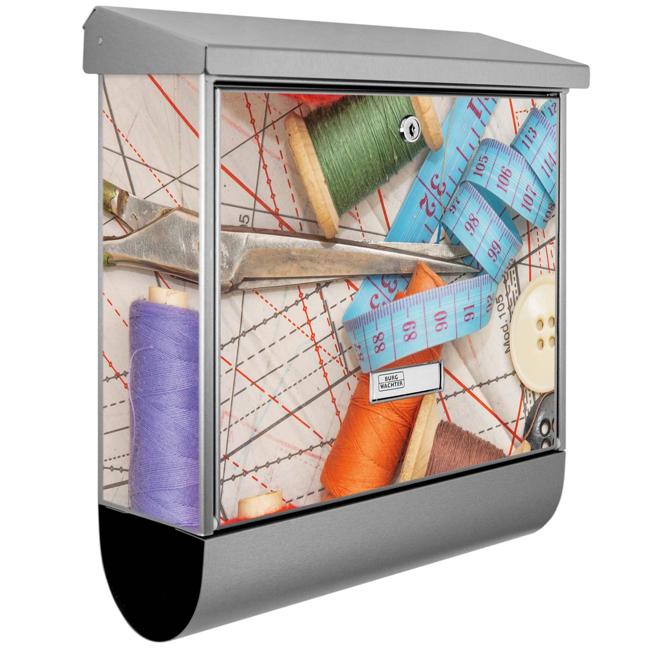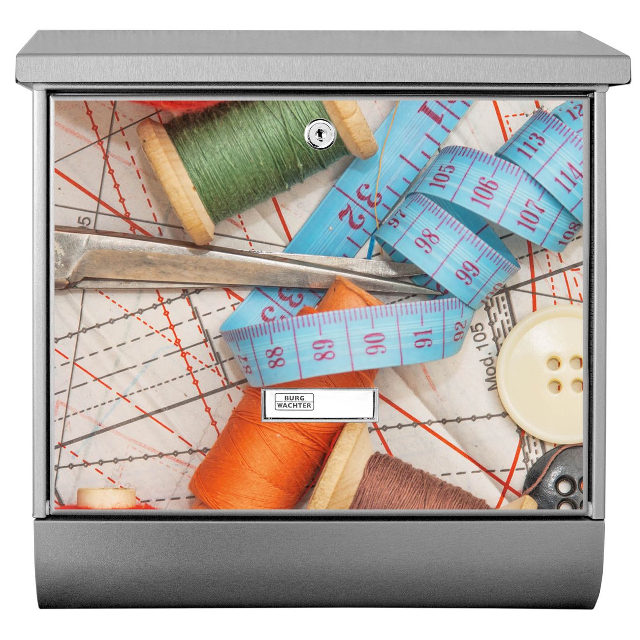 Der Nähen Motivbriefkasten hat ein sehr ansprechendes und zeitloses Design. Unsere Motivpalette hält jede Menge Varianten bereit, ob klassisch, modern, verspielt oder witzig - für jeden haben wir das passende Motiv parat. Der Briefkasten mit Zeitungsfach ist Ihr Aushängeschild, heben Sie Sich ab ohne auf Funktionalität zu verzichten.