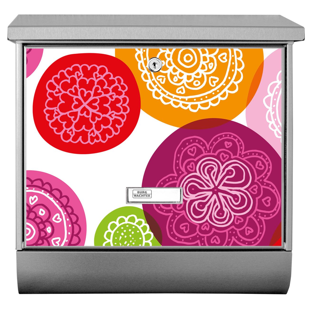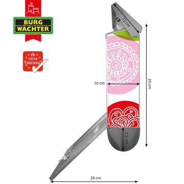 Der BURG-WÄCHTER Edelstahl Briefkasten mit Motiv Naive Blüten und Zeitungsrolle bietet Ihnen mit seinem Fassungsvermögen genügend Platz auch für große A4 Sendungen und Zeitschriften. Das integrierte Regendach schützt Ihre Post vor dem Eindringen von Regen.