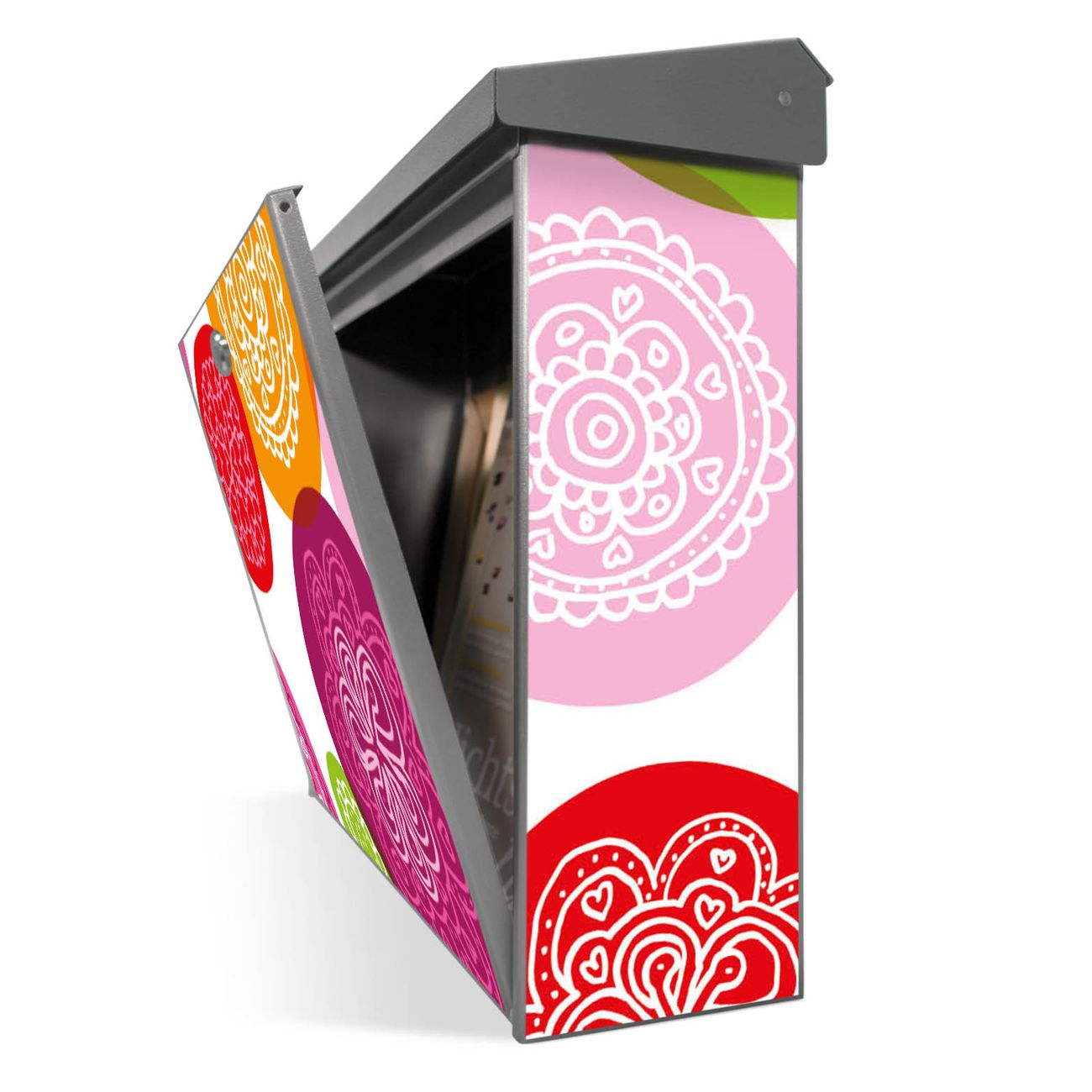 Der Postkasten mit Naive Blüten Motiv hat ein sehr ansprechendes und zeitloses Design. Unsere Motivpalette hält jede Menge Varianten bereit, ob klassisch, modern, verspielt oder witzig - für jeden haben wir das passende Motiv parat. Der Briefkasten ist das Aushängeschild Ihres Hauses.