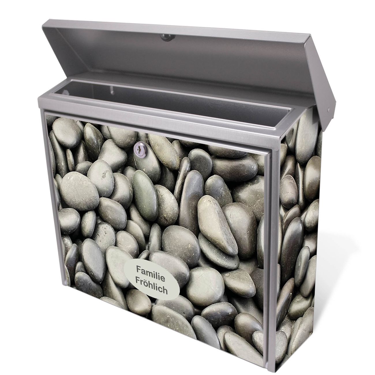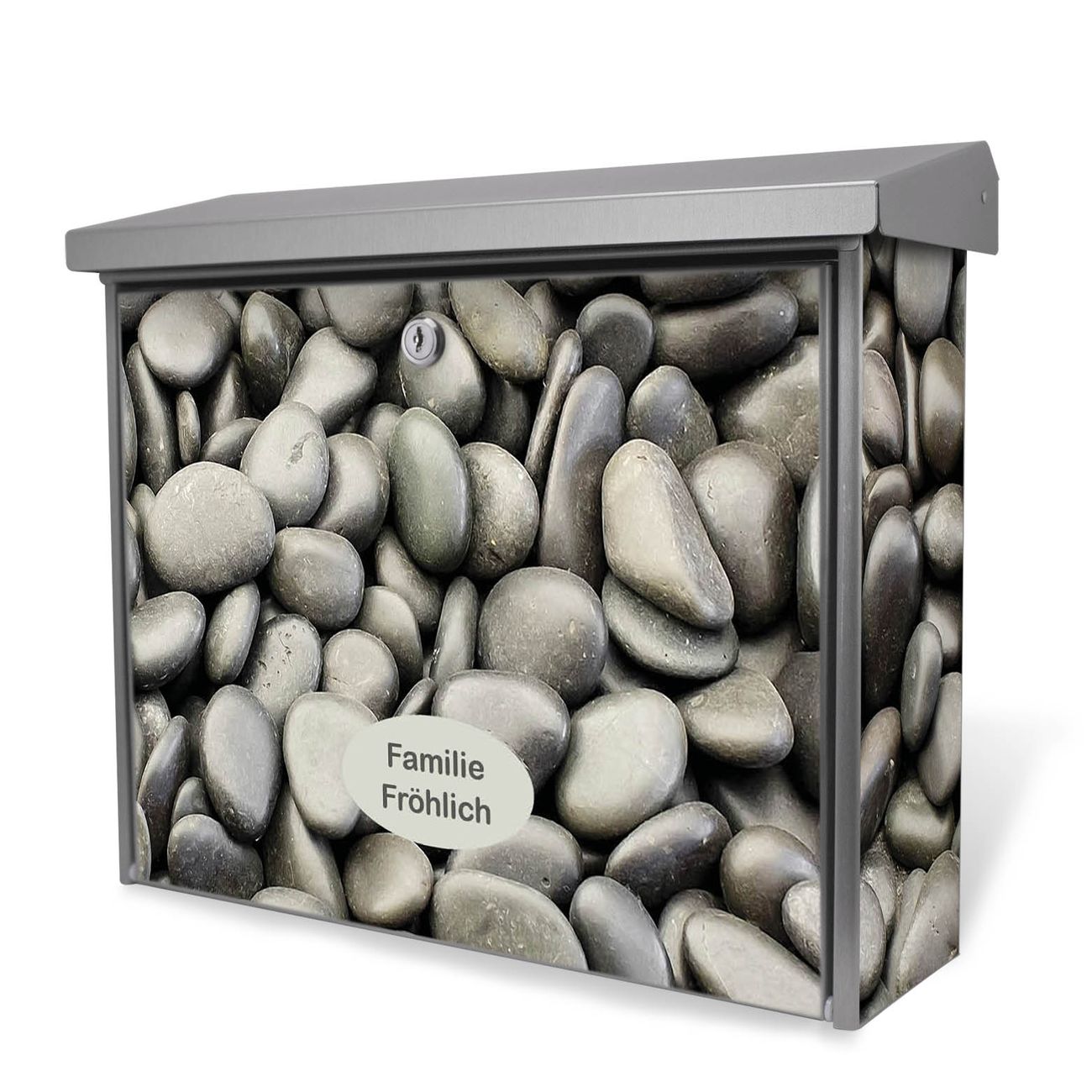 Der Postkasten mit Nasse Kiesel Motiv hat ein sehr ansprechendes und zeitloses Design. Unsere Motivpalette hält jede Menge Varianten bereit, ob klassisch, modern, verspielt oder witzig - für jeden haben wir das passende Motiv parat. Der Briefkasten ist das Aushängeschild Ihres Hauses.