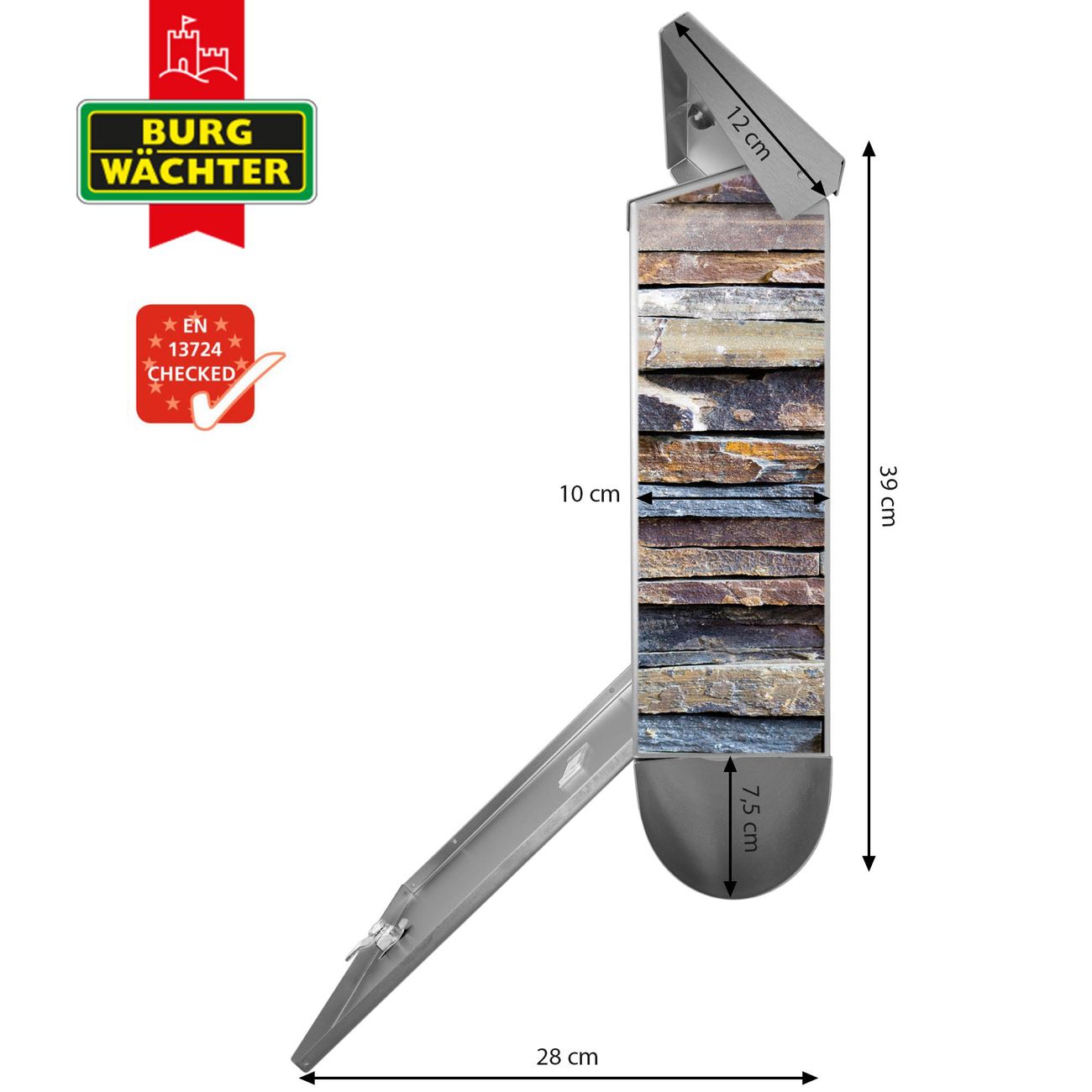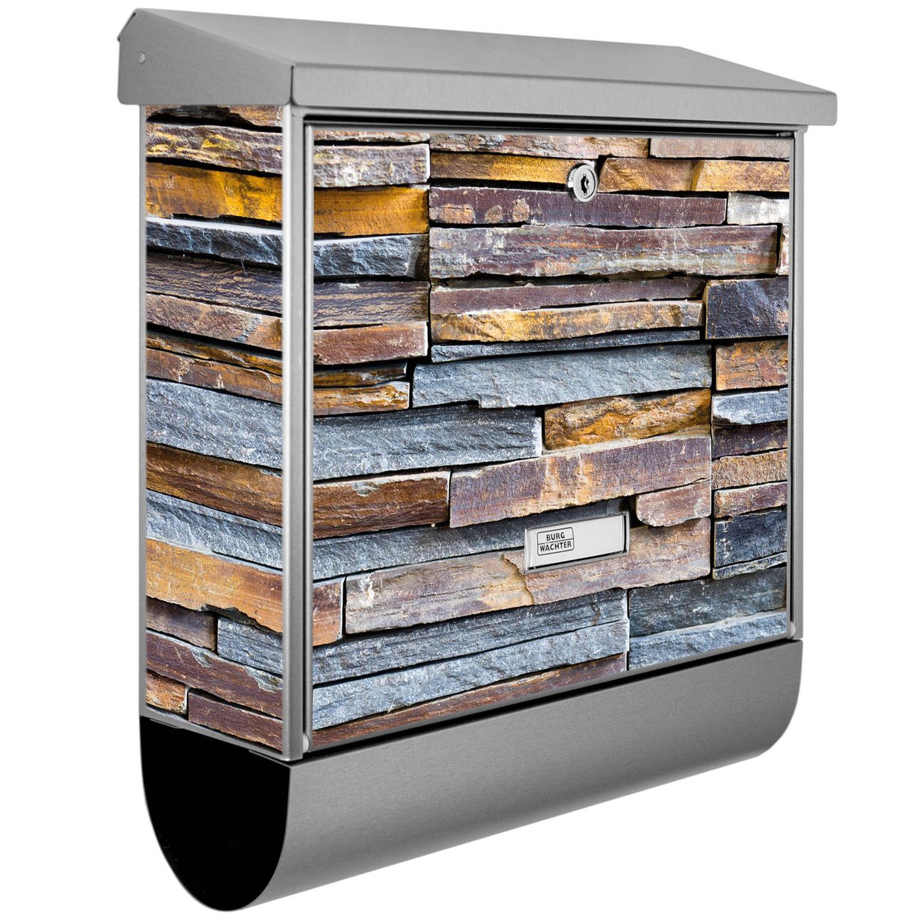Der BURG-WÄCHTER Edelstahl Briefkasten mit Motiv Naturstein und Zeitungsrolle bietet Ihnen mit seinem Fassungsvermögen genügend Platz auch für große A4 Sendungen und Zeitschriften. Das integrierte Regendach schützt Ihre Post vor dem Eindringen von Regen.