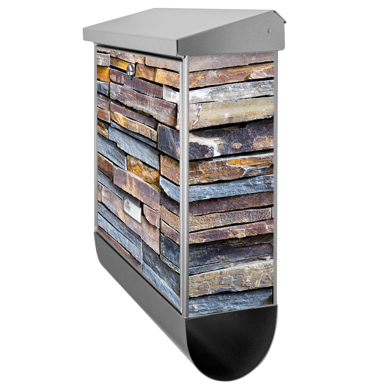 Der Briefkasten besteht aus Edelstahl, einem hochwertigen Material das rostfrei und äußerst unempfindlich gegenüber Witterungseinflüssen ist. Das Motiv besteht aus einer wetter- und UV-festen Folie, die Ihren Briefkasten zusätzlich vor Kratzern schützt. Der Postkasten ist je nach Auswahl 38 x 39 x 12 CM oder 38 x 31,5 x 12 cm (BxHxT) groß. Der Briefeinwurf ist 33,2cm x 3,1cm, Format DIN C4. Der Briefkasten wird mit Montagematerial und zwei Schlüsseln geliefert.