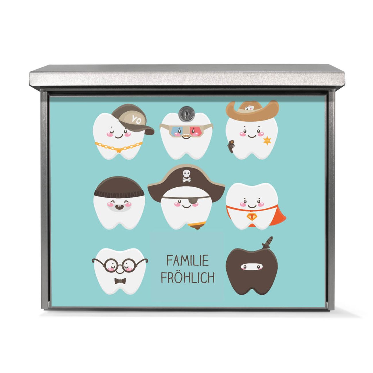 Der Postkasten mit Neun Zähne Motiv hat ein sehr ansprechendes und zeitloses Design. Unsere Motivpalette hält jede Menge Varianten bereit, ob klassisch, modern, verspielt oder witzig - für jeden haben wir das passende Motiv parat. Der Briefkasten ist das Aushängeschild Ihres Hauses.