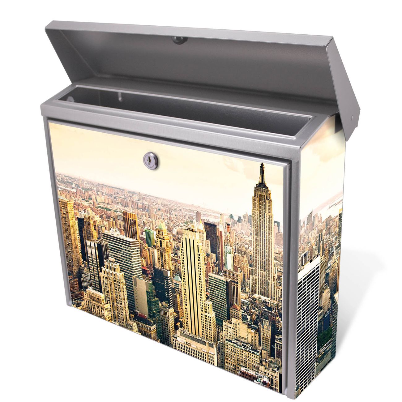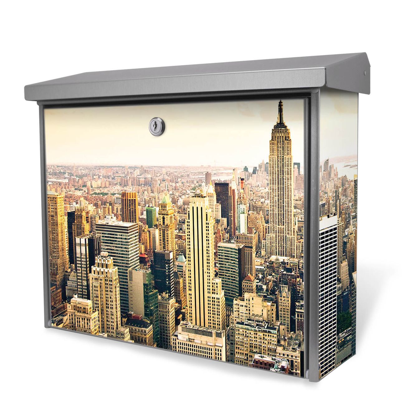 Der Postkasten mit New York City Motiv hat ein sehr ansprechendes und zeitloses Design. Unsere Motivpalette hält jede Menge Varianten bereit, ob klassisch, modern, verspielt oder witzig - für jeden haben wir das passende Motiv parat. Der Briefkasten ist das Aushängeschild Ihres Hauses.