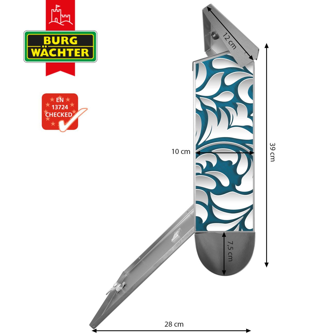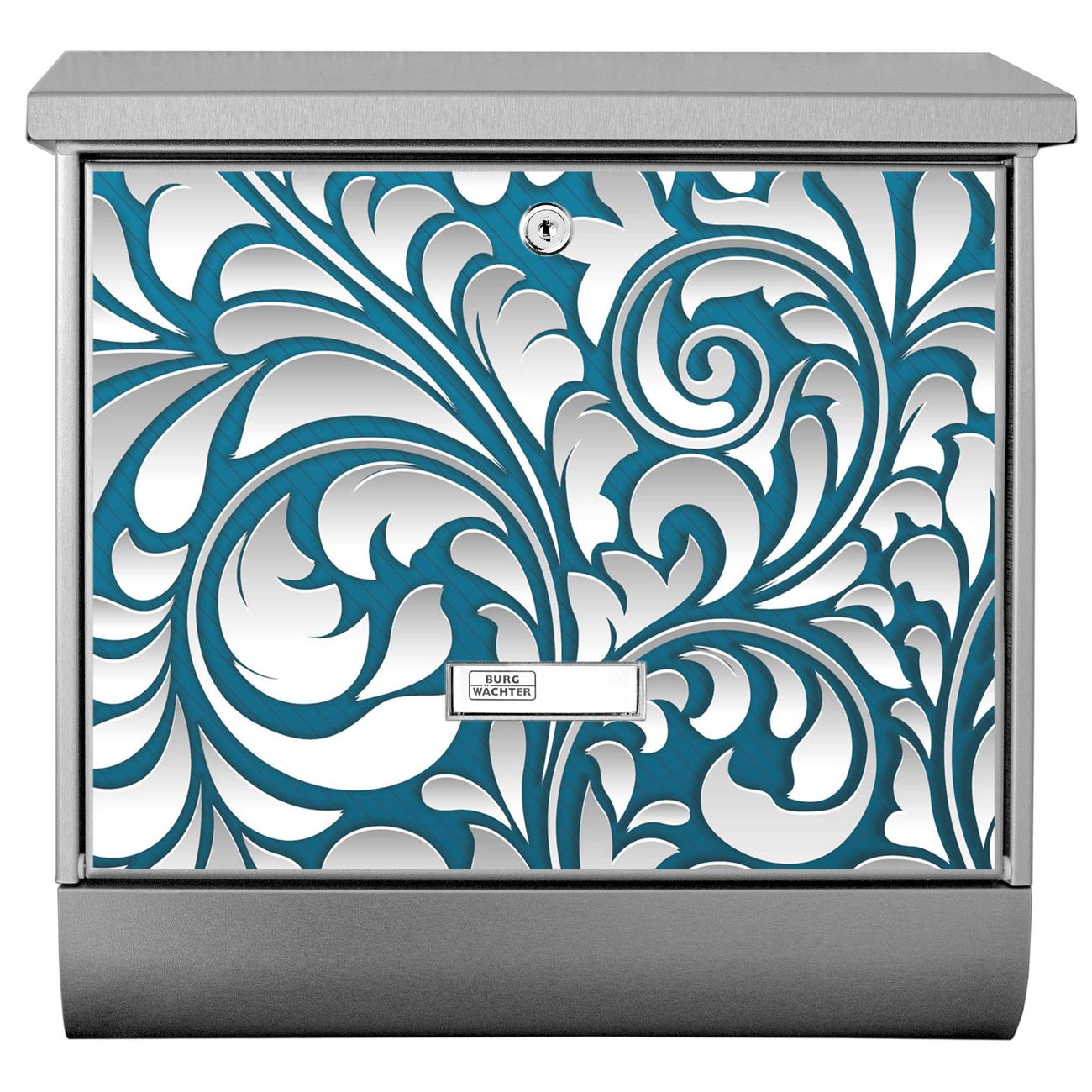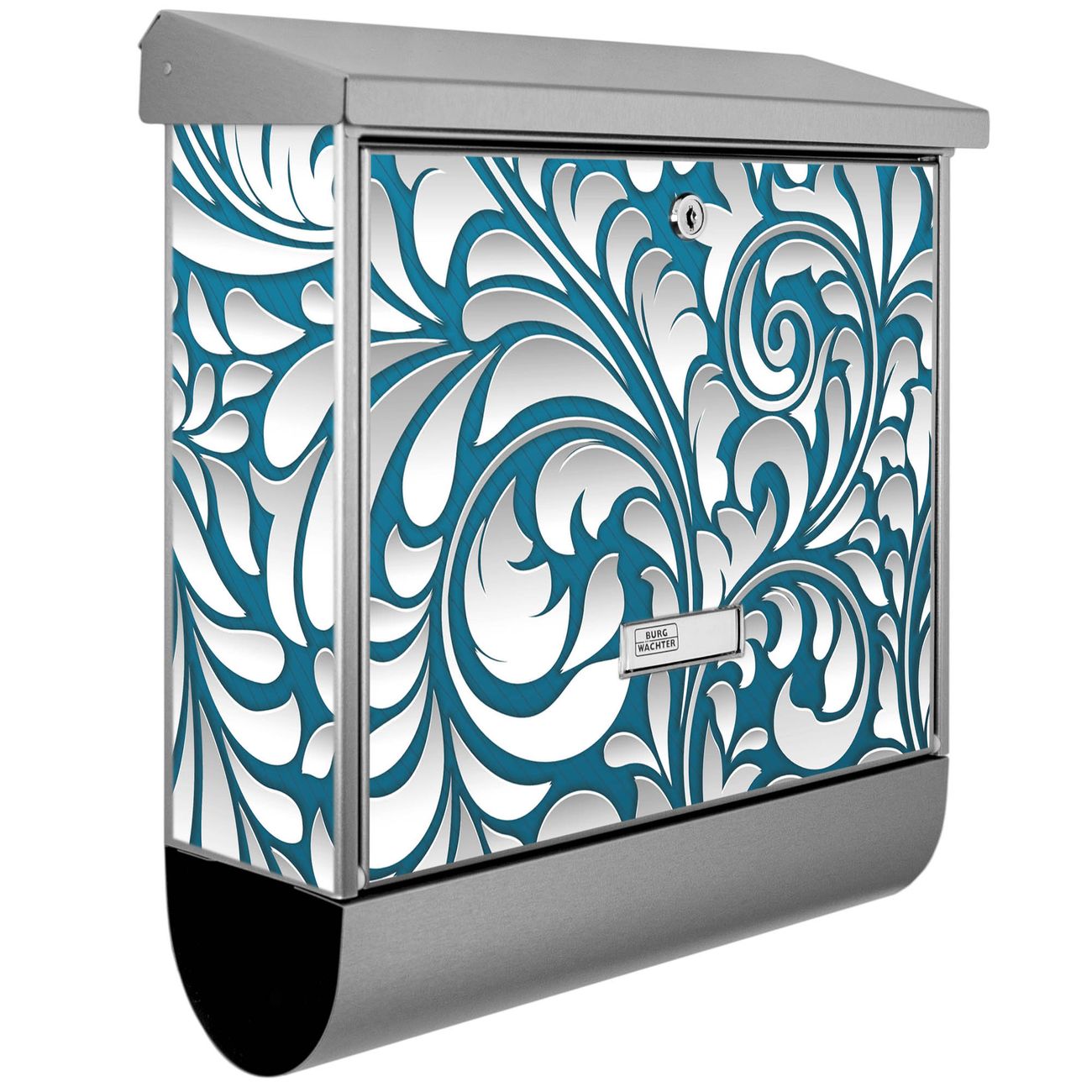Der BURG-WÄCHTER Edelstahl Briefkasten mit Motiv Opulente Ranke und Zeitungsrolle bietet Ihnen mit seinem Fassungsvermögen genügend Platz auch für große A4 Sendungen und Zeitschriften. Das integrierte Regendach schützt Ihre Post vor dem Eindringen von Regen.