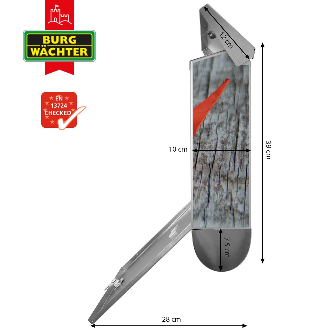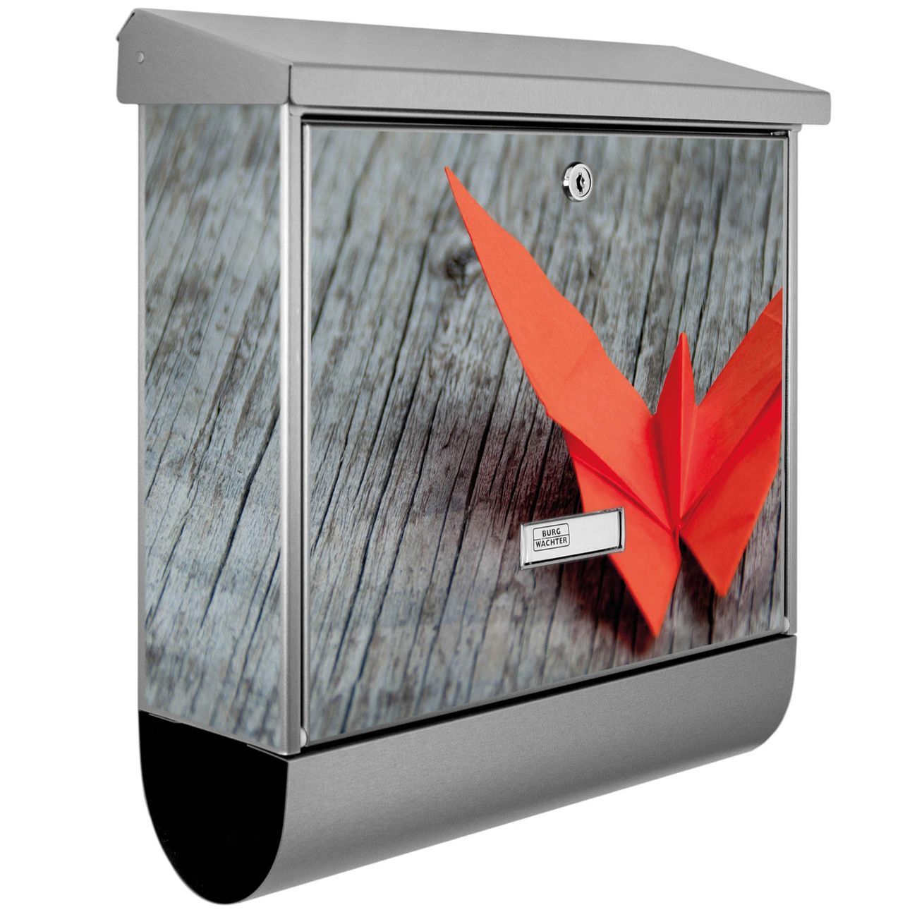 Der BURG-WÄCHTER Edelstahl Briefkasten mit Motiv Origami Schmetterling und Zeitungsrolle bietet Ihnen mit seinem Fassungsvermögen genügend Platz auch für große A4 Sendungen und Zeitschriften. Das integrierte Regendach schützt Ihre Post vor dem Eindringen von Regen.