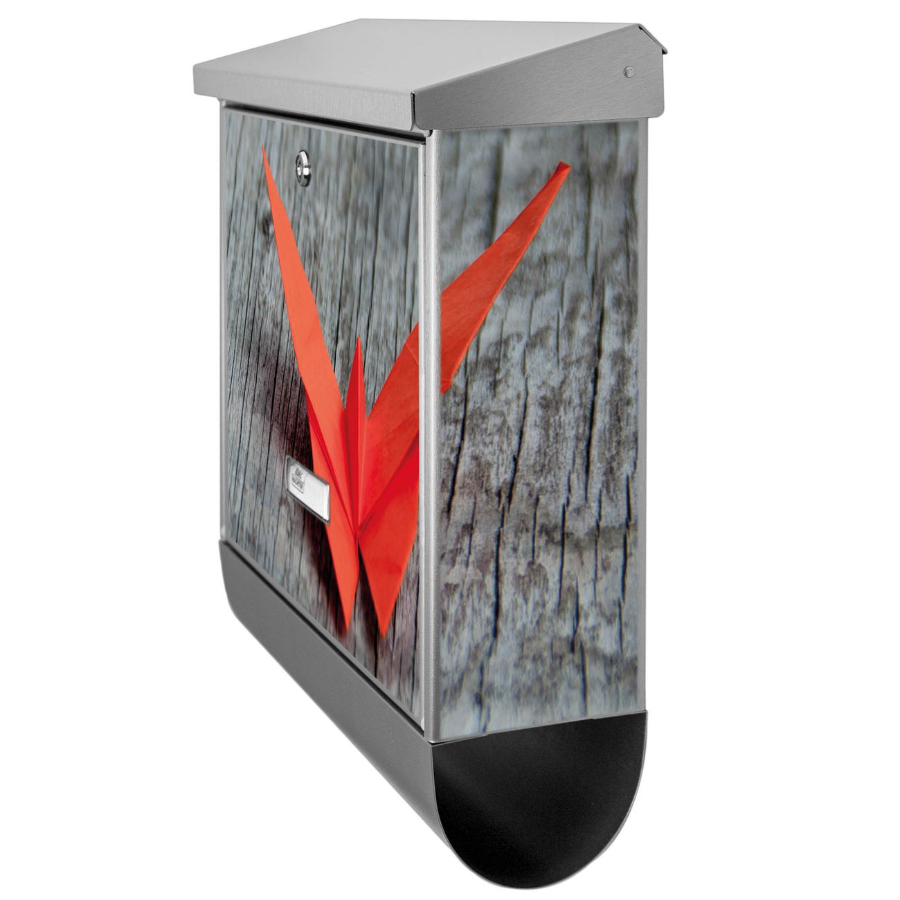 Der Briefkasten besteht aus Edelstahl, einem hochwertigen Material das rostfrei und äußerst unempfindlich gegenüber Witterungseinflüssen ist. Das Motiv besteht aus einer wetter- und UV-festen Folie, die Ihren Briefkasten zusätzlich vor Kratzern schützt. Der Postkasten ist je nach Auswahl 38 x 39 x 12 CM oder 38 x 31,5 x 12 cm (BxHxT) groß. Der Briefeinwurf ist 33,2cm x 3,1cm, Format DIN C4. Der Briefkasten wird mit Montagematerial und zwei Schlüsseln geliefert.