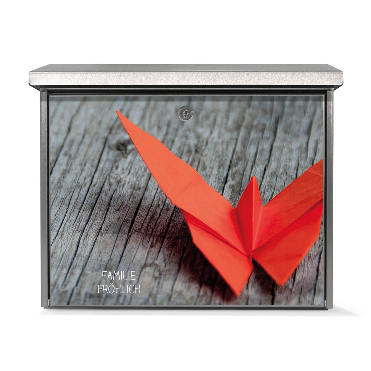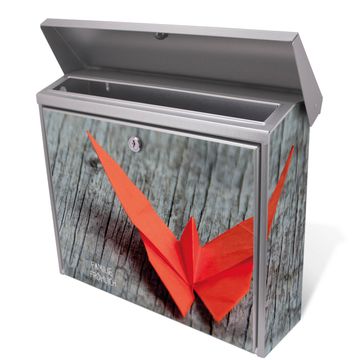 Der Postkasten mit Origami Schmetterling Motiv hat ein sehr ansprechendes und zeitloses Design. Unsere Motivpalette hält jede Menge Varianten bereit, ob klassisch, modern, verspielt oder witzig - für jeden haben wir das passende Motiv parat. Der Briefkasten ist das Aushängeschild Ihres Hauses.
