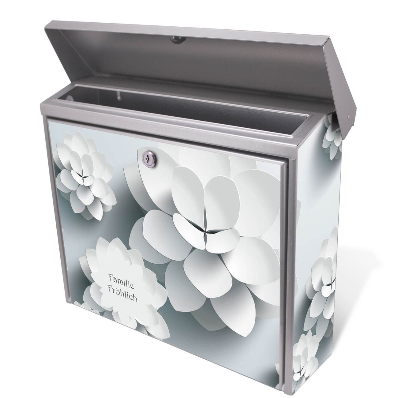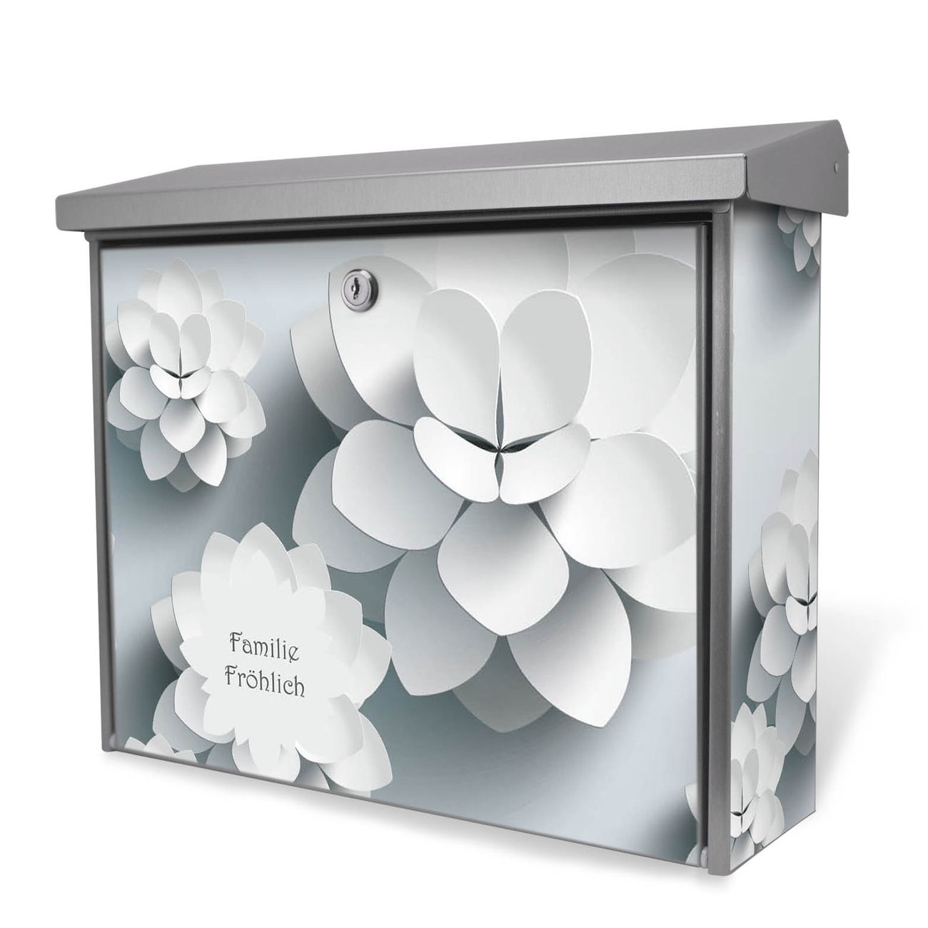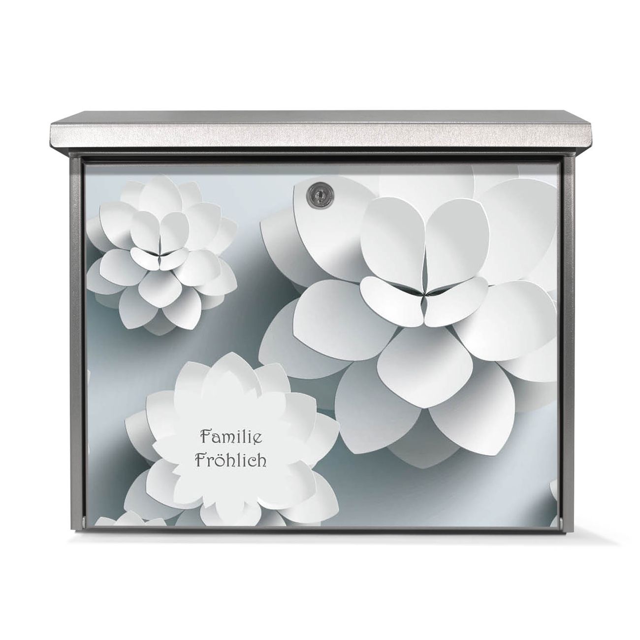Der Postkasten mit Papier Lotus Motiv hat ein sehr ansprechendes und zeitloses Design. Unsere Motivpalette hält jede Menge Varianten bereit, ob klassisch, modern, verspielt oder witzig - für jeden haben wir das passende Motiv parat. Der Briefkasten ist das Aushängeschild Ihres Hauses.