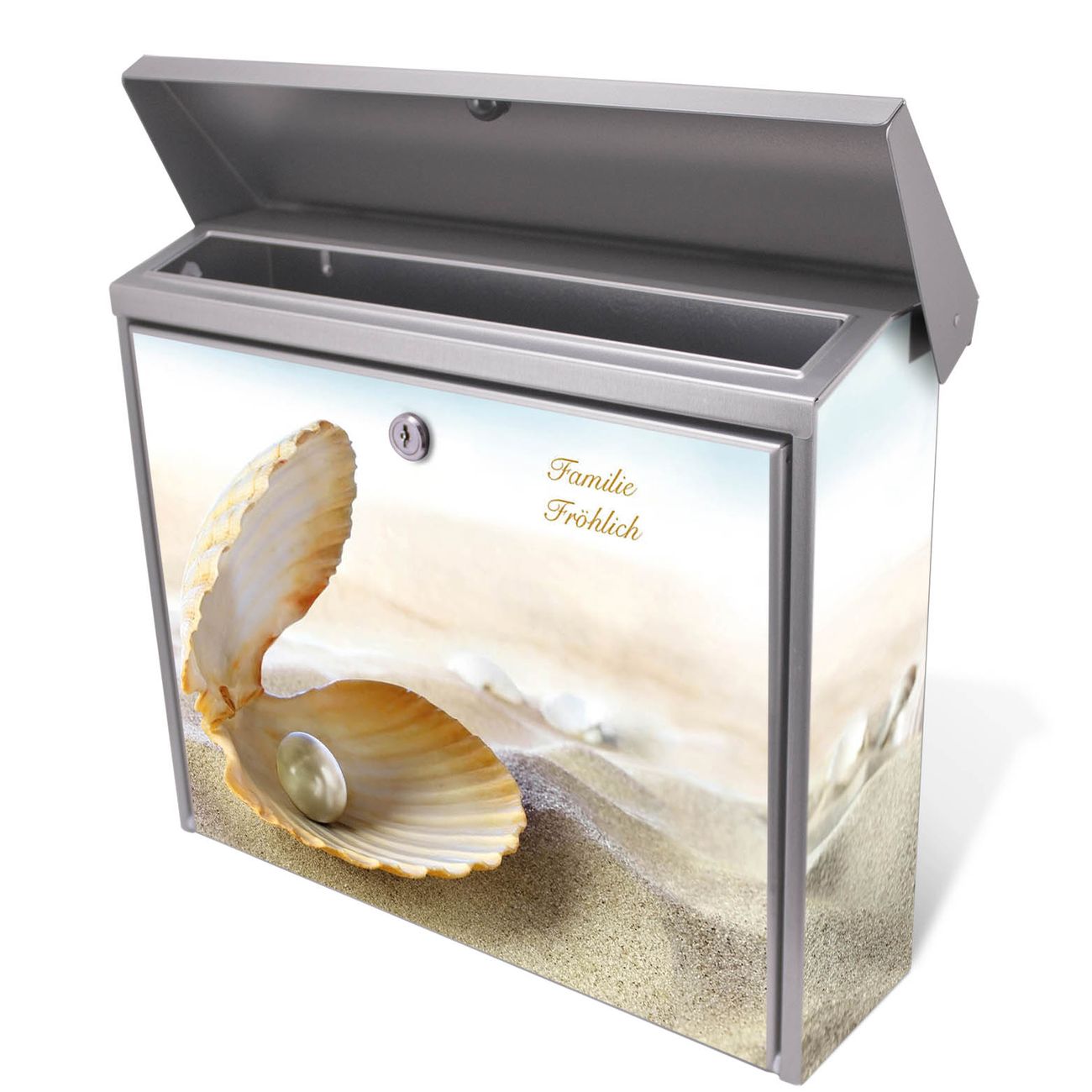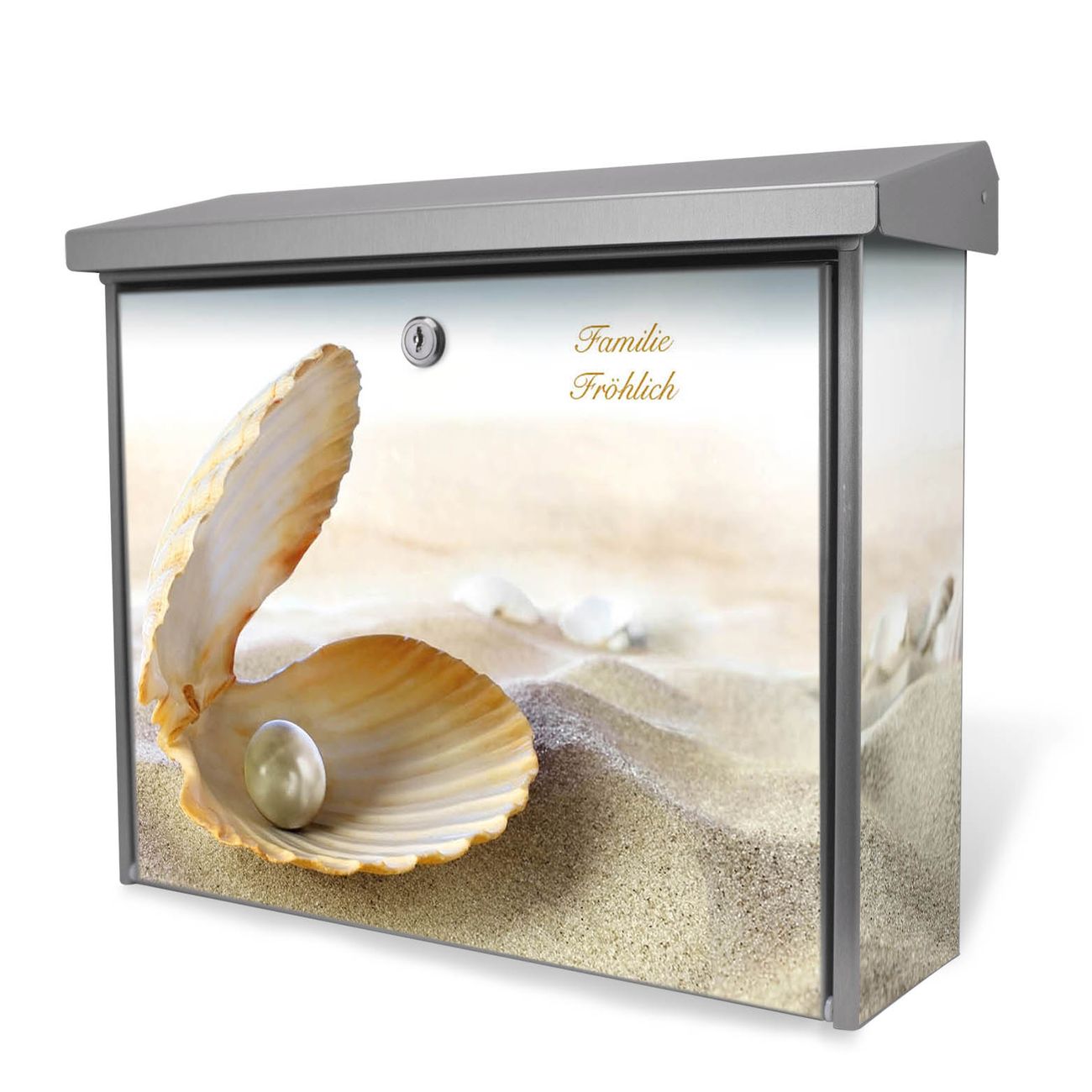 Der Postkasten mit Perlenmuschel Motiv hat ein sehr ansprechendes und zeitloses Design. Unsere Motivpalette hält jede Menge Varianten bereit, ob klassisch, modern, verspielt oder witzig - für jeden haben wir das passende Motiv parat. Der Briefkasten ist das Aushängeschild Ihres Hauses.