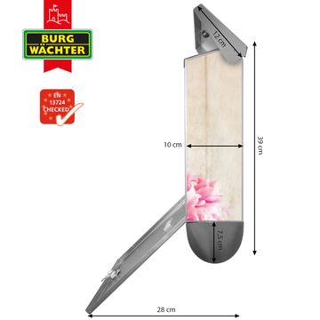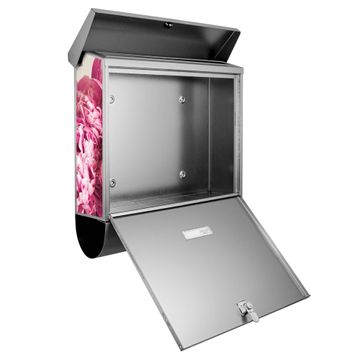 Der BURG-WÄCHTER Edelstahl Briefkasten mit Motiv Pfingstrose und Zeitungsrolle bietet Ihnen mit seinem Fassungsvermögen genügend Platz auch für große A4 Sendungen und Zeitschriften. Das integrierte Regendach schützt Ihre Post vor dem Eindringen von Regen.