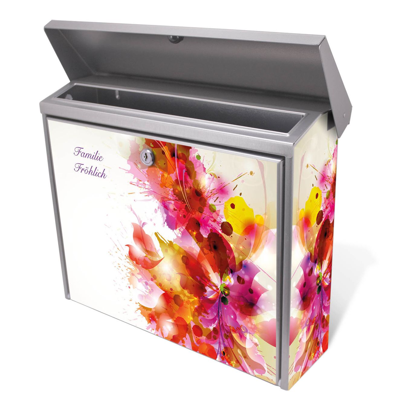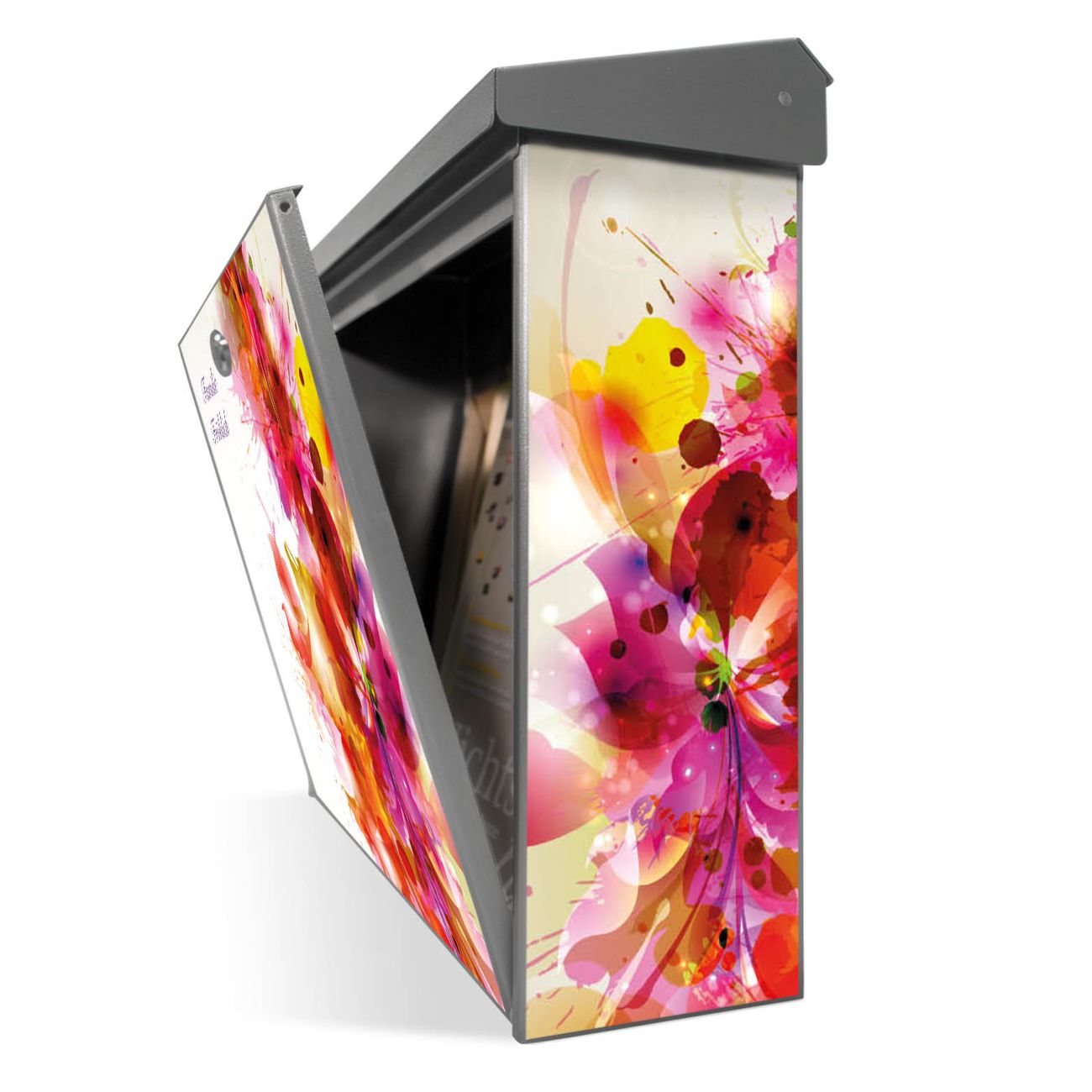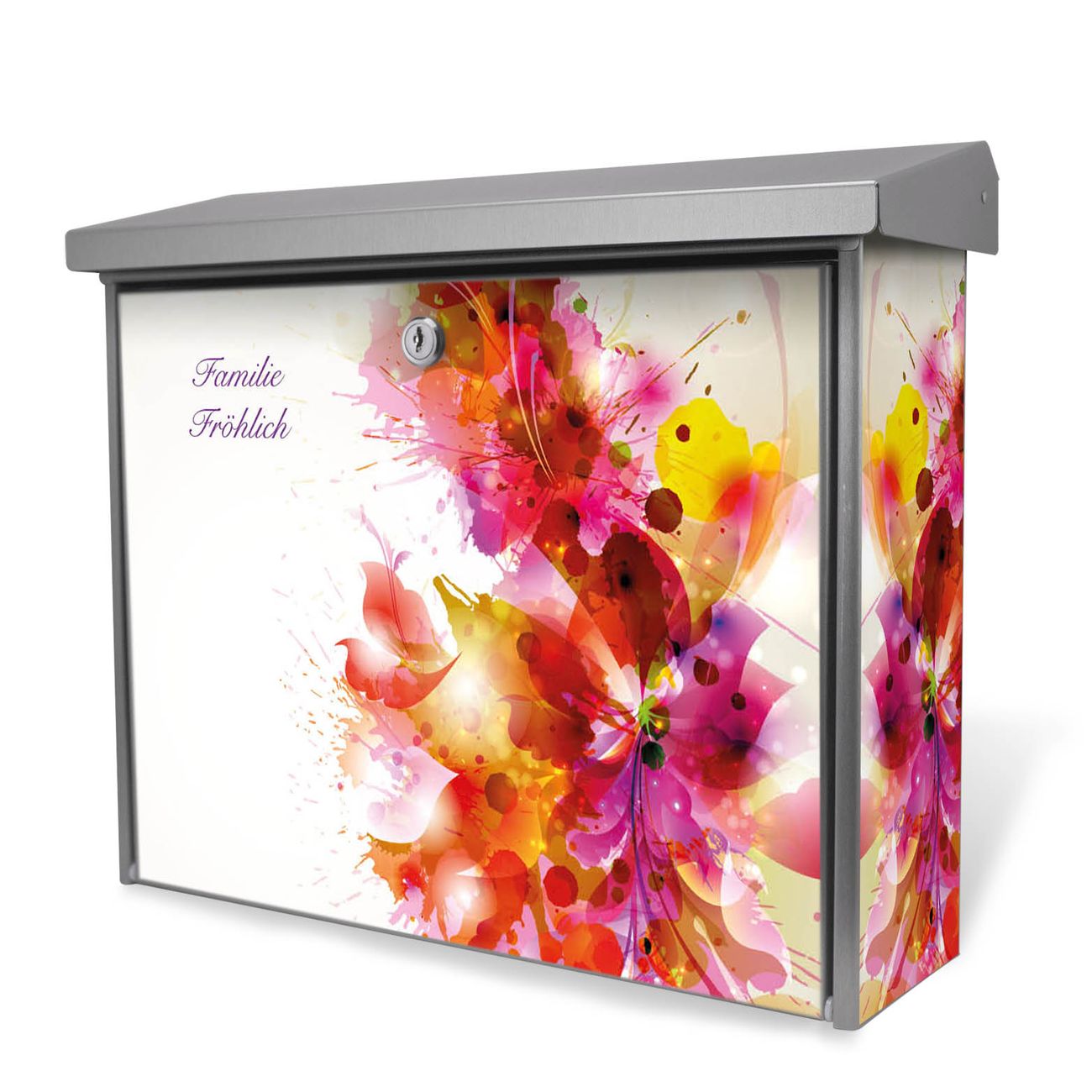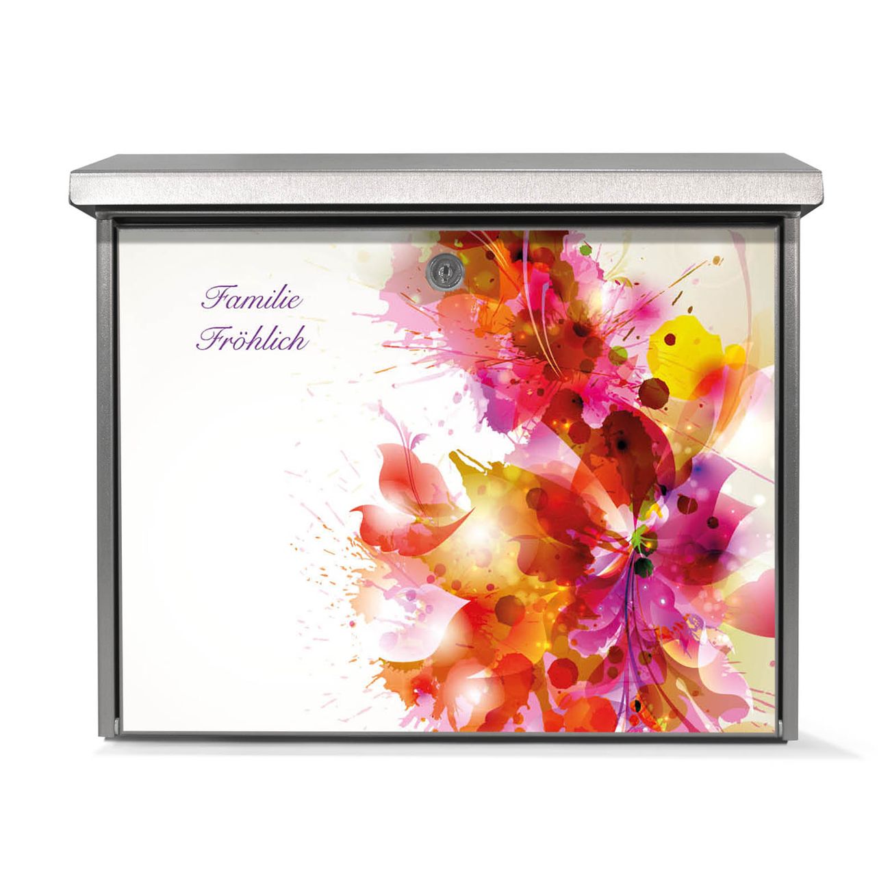 Der Postkasten mit Pink Explosion Motiv hat ein sehr ansprechendes und zeitloses Design. Unsere Motivpalette hält jede Menge Varianten bereit, ob klassisch, modern, verspielt oder witzig - für jeden haben wir das passende Motiv parat. Der Briefkasten ist das Aushängeschild Ihres Hauses.