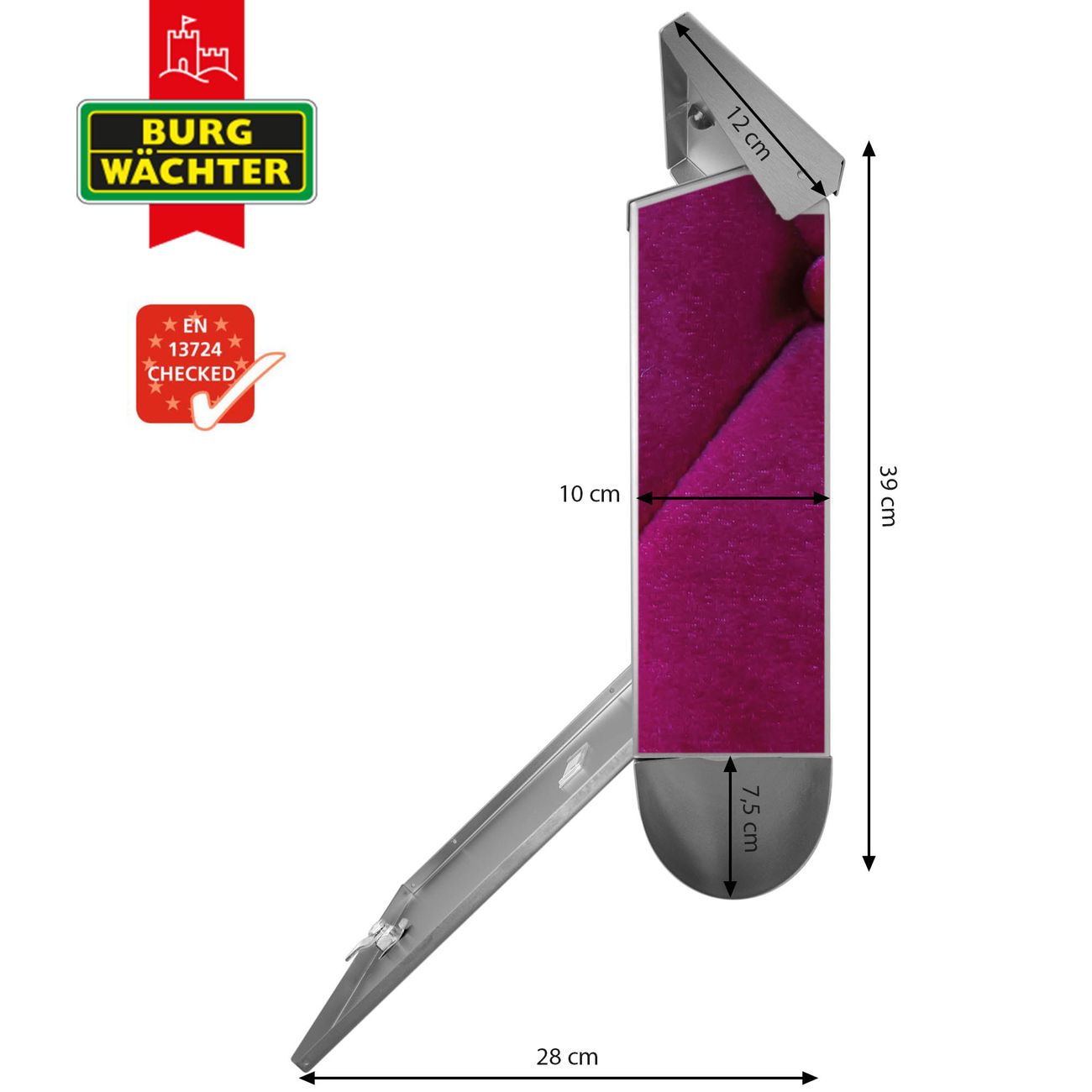 Der BURG-WÄCHTER Edelstahl Briefkasten mit Motiv Pink Polster und Zeitungsrolle bietet Ihnen mit seinem Fassungsvermögen genügend Platz auch für große A4 Sendungen und Zeitschriften. Das integrierte Regendach schützt Ihre Post vor dem Eindringen von Regen.